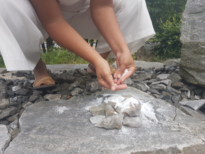 The Bakongo Cosmogram is a circle divided by a four-point cross and follows the path of the sun. The celestial scope is metaphorized, for the Bantu-Kongo and their diasporic descendants as a human-ancestral infinite, circular, spiral trajectory of life. Kalunga is the horizontal liquid membrane of the cross: the sea. Is the boundary between the living world and the world where the souls of the ancestors meet. Which presides over the metamorphosis body-spirit-body. Kalunga is a symbolic place of transition. Where the body communicates with the water archive and with the earth archive. There is a transformative aspect of the space, that is Kalunga, the activation of life, the force, the manifestation, the mutual communication, the call and response of co-ontologies that operate above and below Kalunga.
