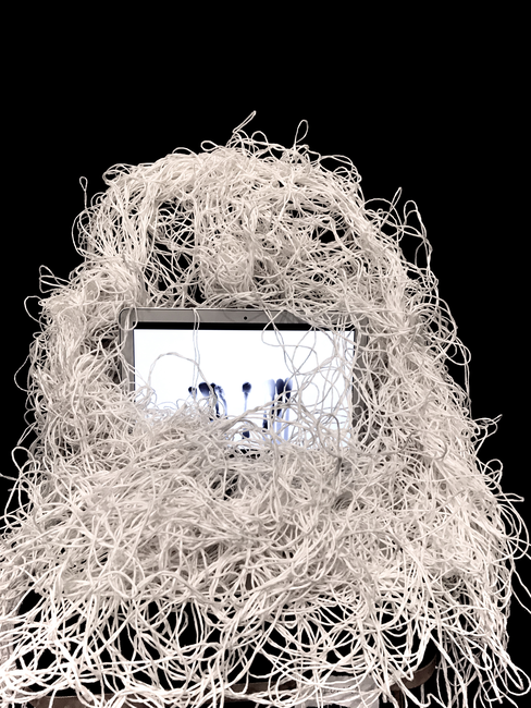 The artist explores bodily movement and visual elements to create install – actions in spaces.