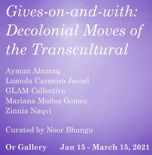 . 2021 - Exhibition: "Gives-on-and-with: Decolonial Moves of the Transcultural"