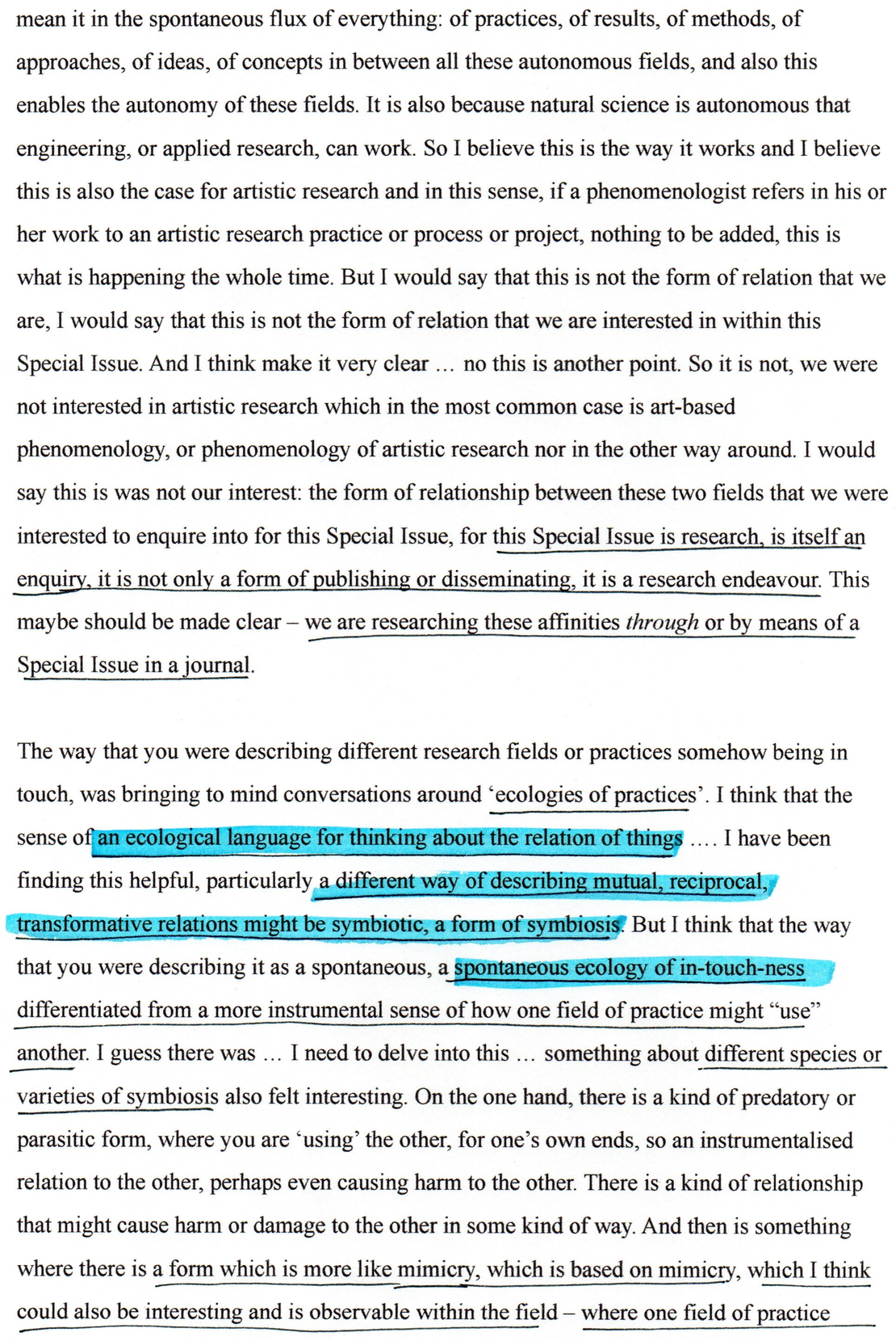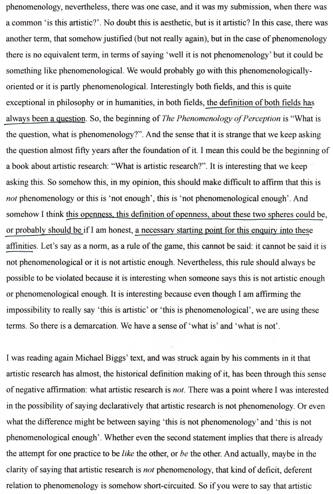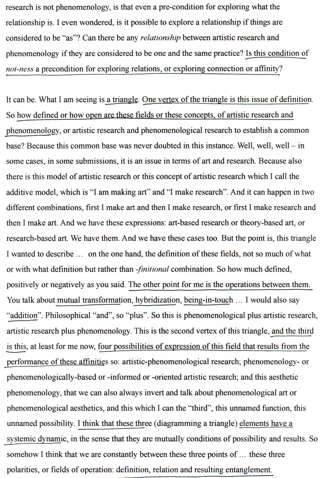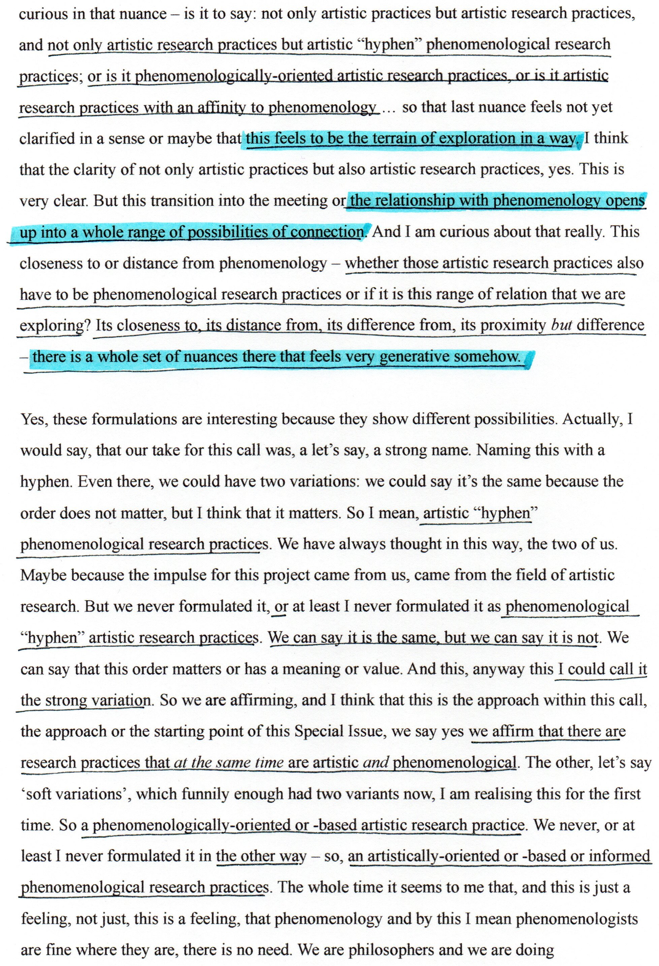 This exposition forms part of the Editorial Introduction by Alex Arteaga and Emma Cocker published in the Special Issue 'Practices of Phenomenological and Artistic Research', (eds.) Alex Arteaga, Emma Cocker, Erika Goble, Juha Himanka, Phenomenology & Practice, [Vol. 17, No.1, 2022]. ISSN 1913-4711 See full issue here - https://journals.library.ualberta.ca/pandpr/index.php/pandpr/index