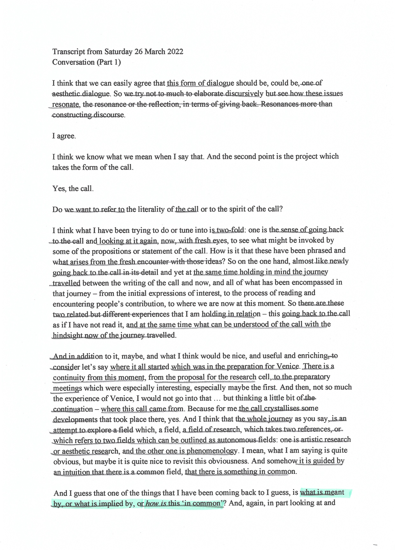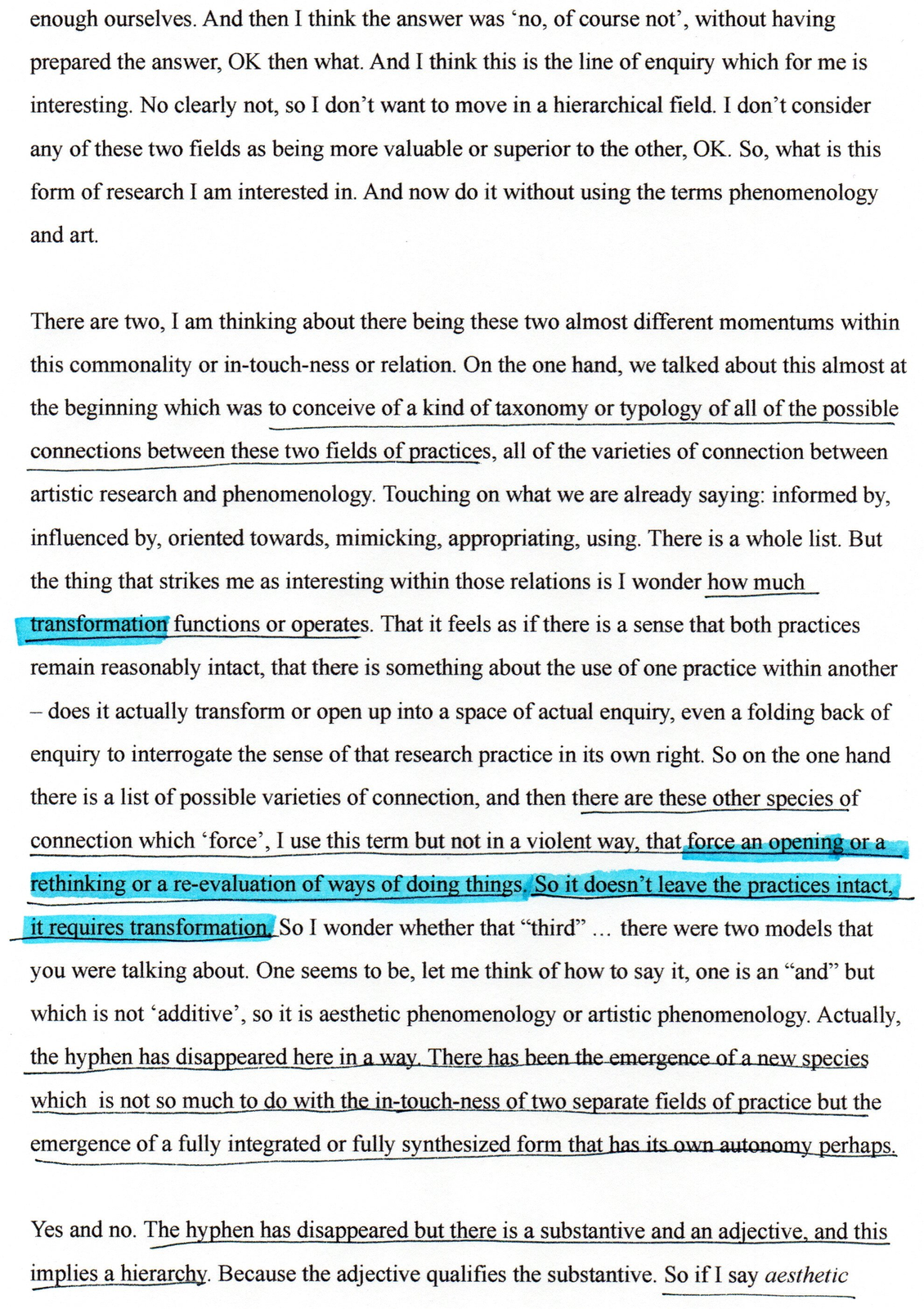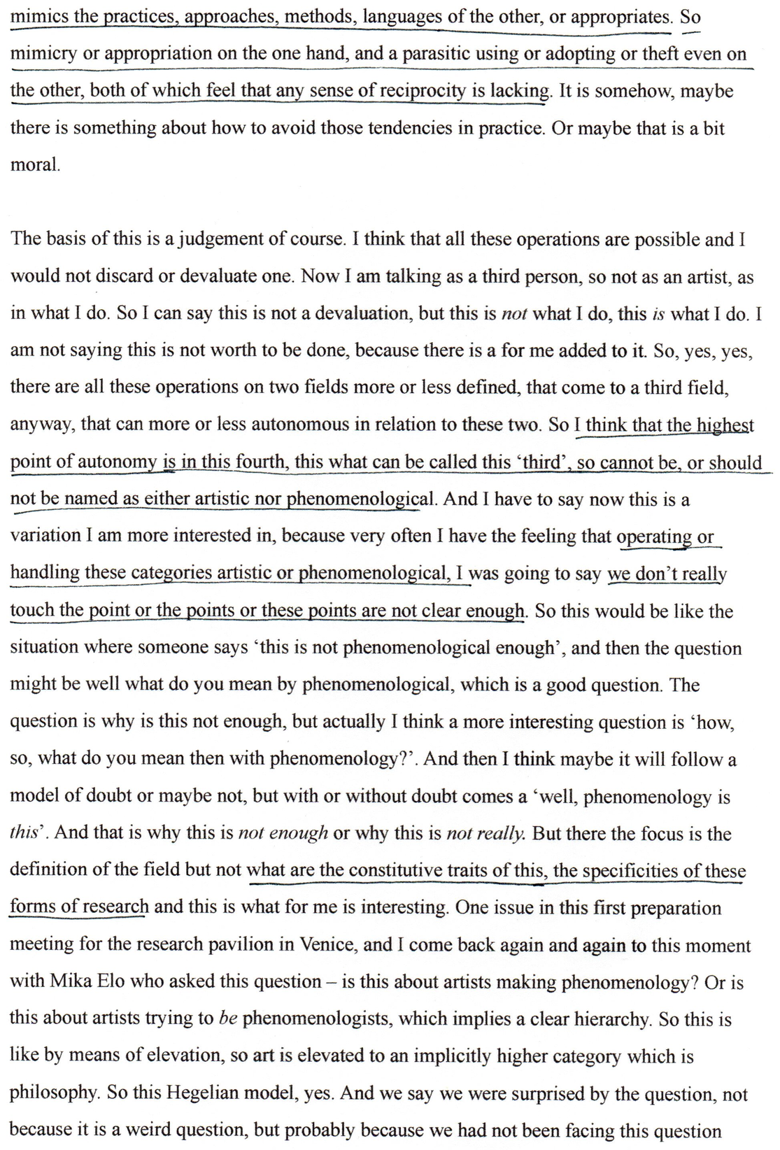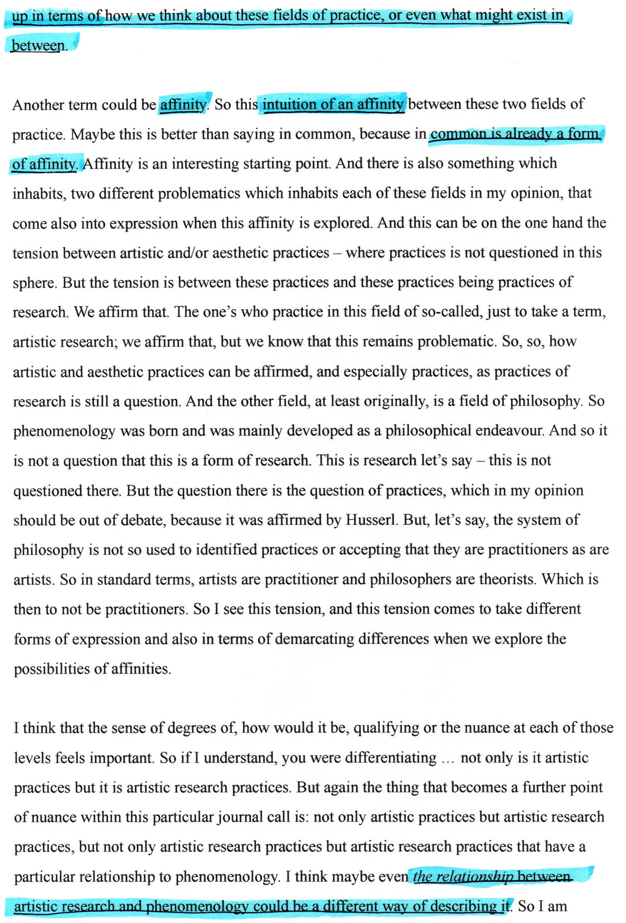 This exposition forms part of the Editorial Introduction by Alex Arteaga and Emma Cocker published in the Special Issue 'Practices of Phenomenological and Artistic Research', (eds.) Alex Arteaga, Emma Cocker, Erika Goble, Juha Himanka, Phenomenology & Practice, [Vol. 17, No.1, 2022]. ISSN 1913-4711 See full issue here - https://journals.library.ualberta.ca/pandpr/index.php/pandpr/index