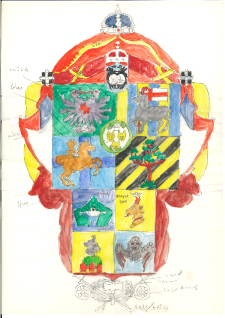 När jag började utforska konstitutionen och riket Roma kändes det viktigt att ta makten och att träda in i rollen som kung. Jag frågade därför några vänner som är fotografer om dom kunde tänka sig att ta lite bilder på mig iförd mantel och krona ingen hade några idéer men en kompis frågade om jag inte skulle fråga Thron Ullberg porträttfotograf en bekant som bland annat har tagit porträttbilder på kung Carl XVI Gustaf. Till min förvåning ville Thron hjälpa mig. Porträttbilden är verkligen en speciell genre och kräver ett slags tänkande som man inte nödvändigtvis har tillgång till även om man är van vid att jobba med bilder. Grundidén från min sida var att visa på den traditionella kungen med mantel och krona som jag hade ärvt och den nya statsmanen som jag blivit