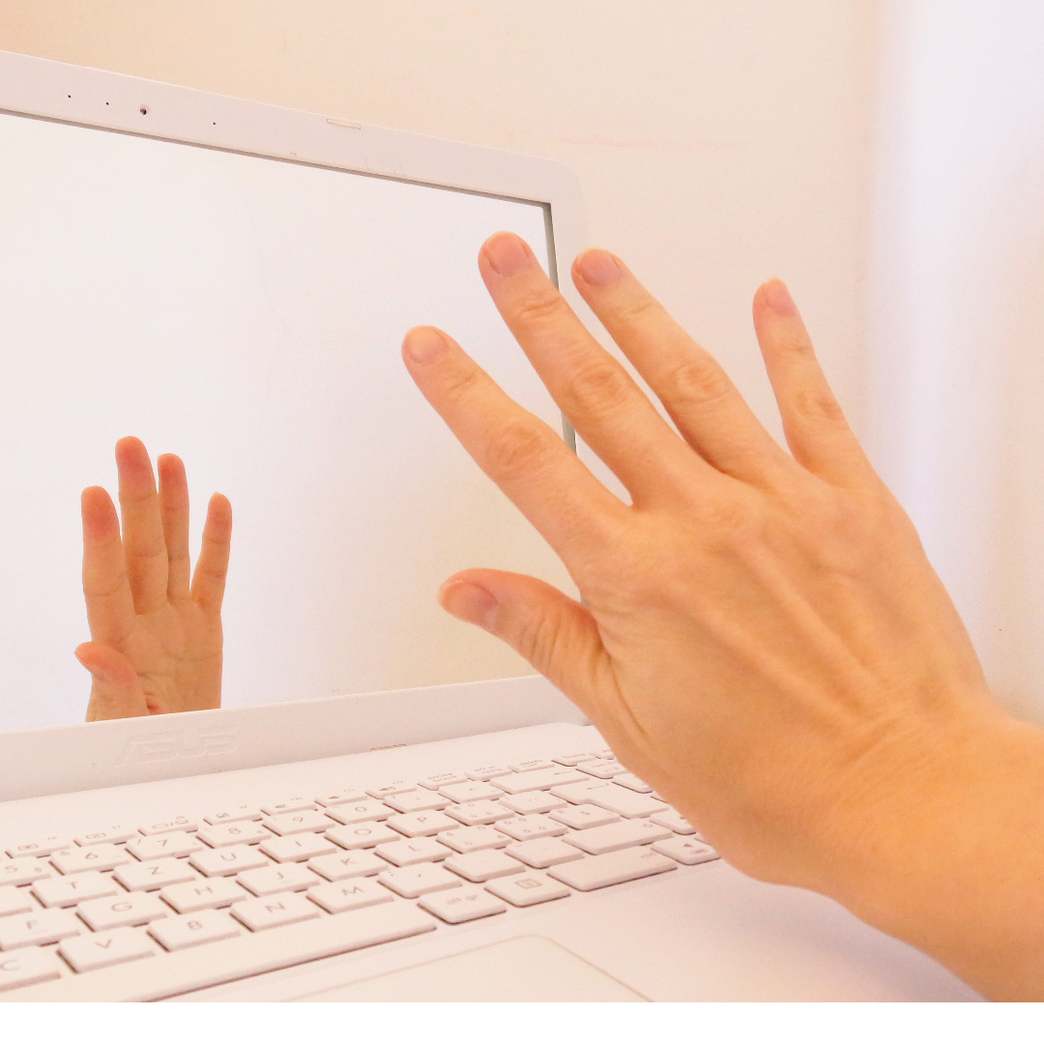 Las pantallas de notebooks o monitores, al estar realizadas con vidrio o plástico, presentan la posibilidad de reflejar o espejar los cuerpos a su alrededor, especialmente cuando están apagadas. Los seres humanos encuentran espejos en pantallas, vidrios o cualquier superficie que por los materiales de los que están hechos son capaces de ofrecer una imagen de los cuerpos cercanos o sorprender a los ojos que miran mirar.