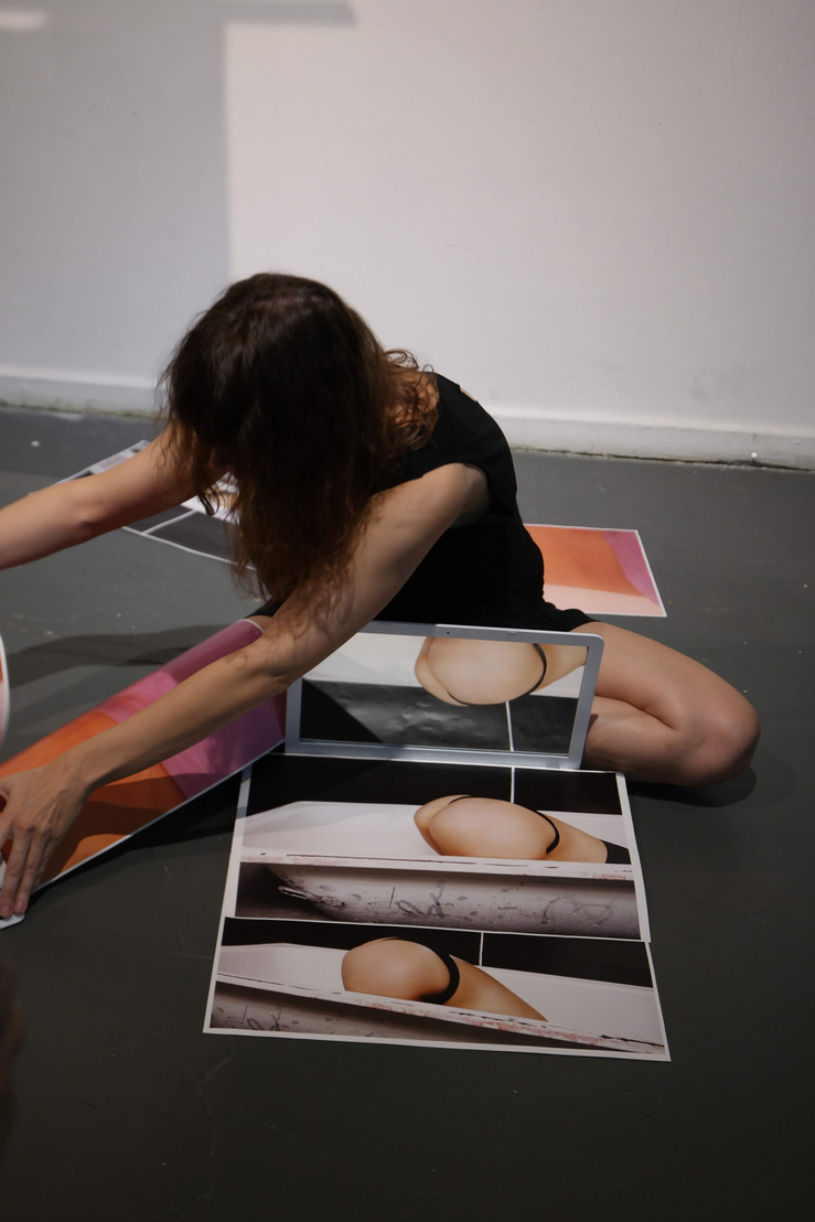 Esta computadora-espejo forma parte de la performance Culos crudos, realizada en vivo en cinco presentaciones en la ciudad de Buenos Aires. Si bien estas performances no se desarrollan en esta exposicion, la vinculación del objeto performático con el resto del cuerpo de obra del que forma parte demanda la inclusión de una referencia visual de una de ellas. Este apartado donde se dejan entreever algunas cuestiones en cuanto a la potencia erótica del espejo en el reflejo de la parte, pero deja latente algo, como todo lo que es erótico. Que suscita el placer imaginativo a través de los sentidos.