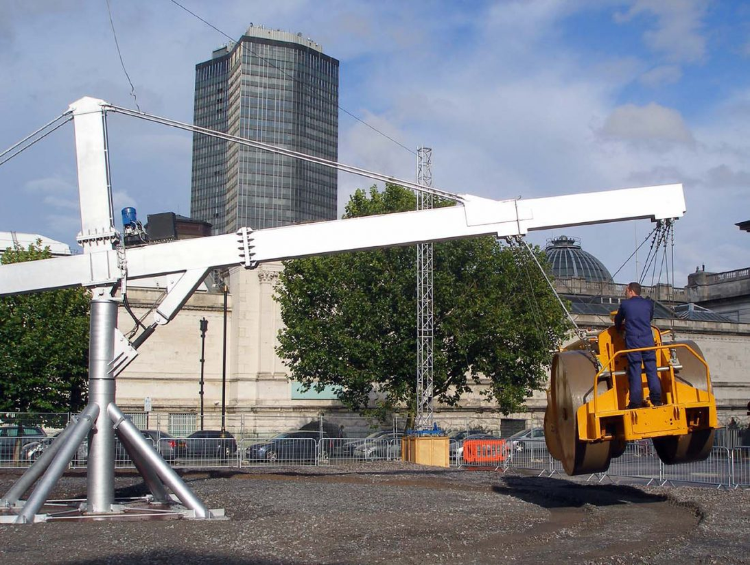 En sculpture, la gravité est inévitable et je suis bien souvent confrontée à trouver un moyen de la contourner ou du moins travailler de façon à la contrebalancer. Dans The Flying Steamroller, Chris Burden pousse à l’extrême l’utilisation du contre-balancier en soulevant de terre un rouleau compresseur pivotant autour d’un axe (Burden et Perrin, 1995). La sculpture-performance semble invraisemblable, comme si le poids n’avait plus d’importance. Quelque chose me pousse à vouloir saisir cette force, la comprendre et pousser ses limites.