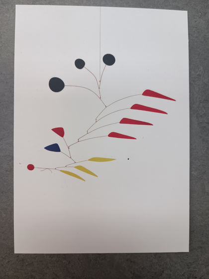 Inspired by a Calder work where a weight hits different bottles I made my own experiment, playing with teh chance of the movement. I see this a kind of kinetic constellation.