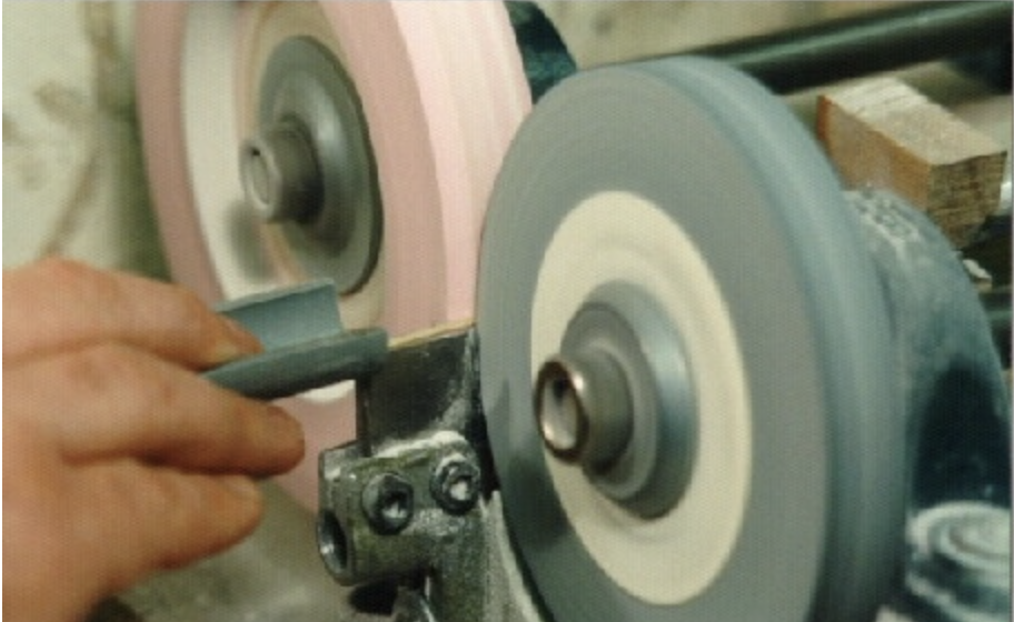The ninth and final step is polishing the strings. This step has changed a bit over the years. The traditional way of polishing was taking a pad with horsehair treated with some oil and pumice powder and rubbing it over the strings. This was in a way the equivalent of sandpaper, but more delicate. Although this step did not do enough, because the thickness over the length of the string was still irregular. This was already caused by the twisting process. The solution was to polish the string so, that the diameter became regular throughout the length. Later, in the 20th century, a mechanism was invented to form a regular diameter during the sanding process, instead of fixing this problem with the polish. (See figure 3 below [6]).