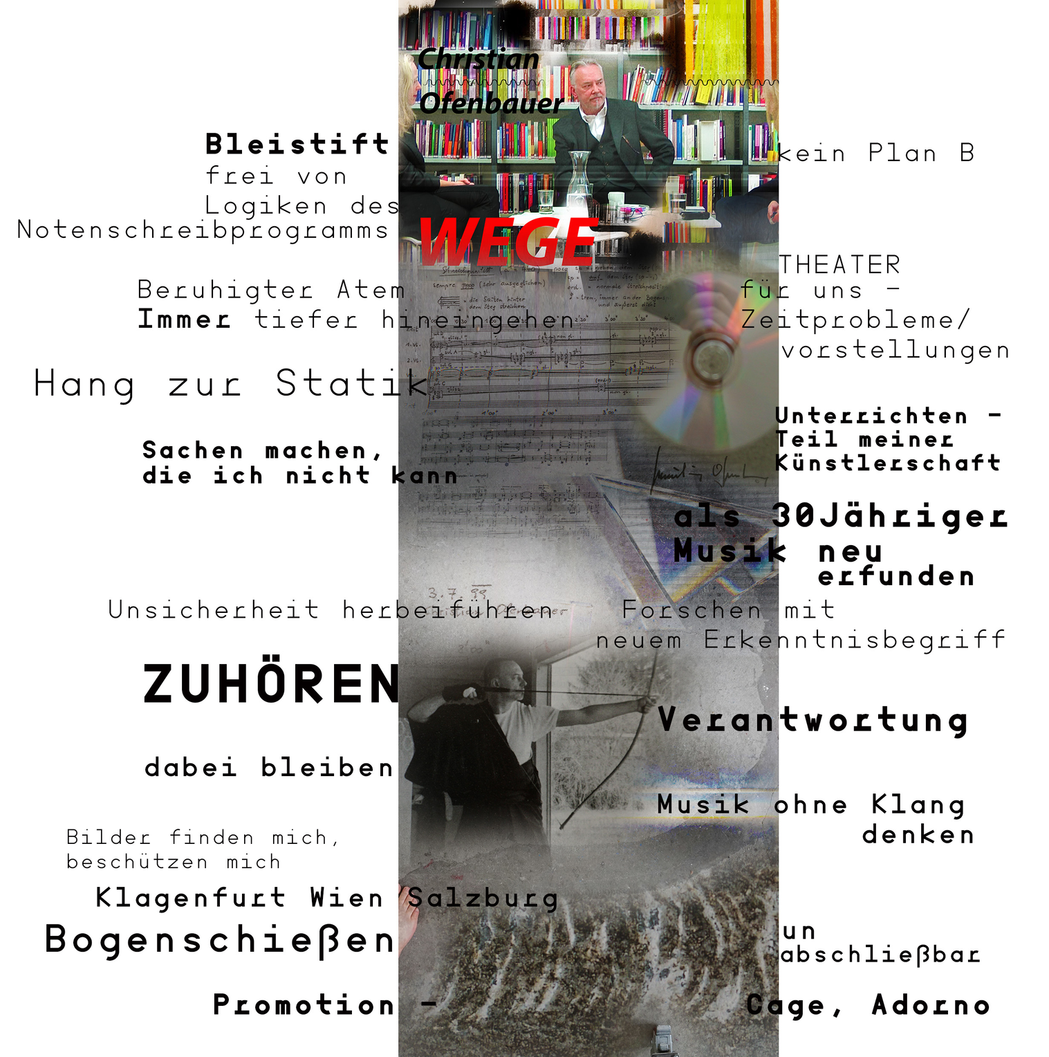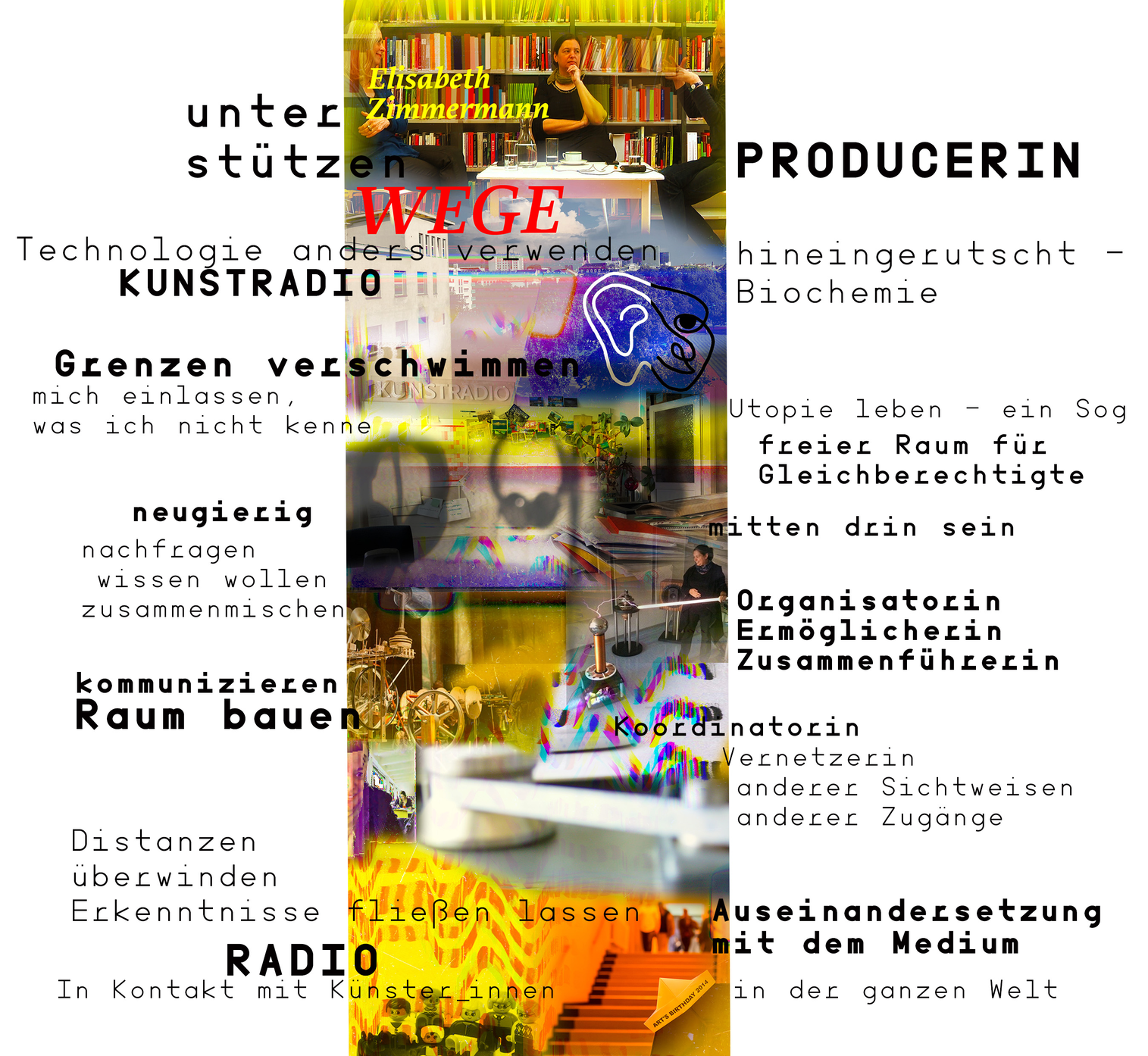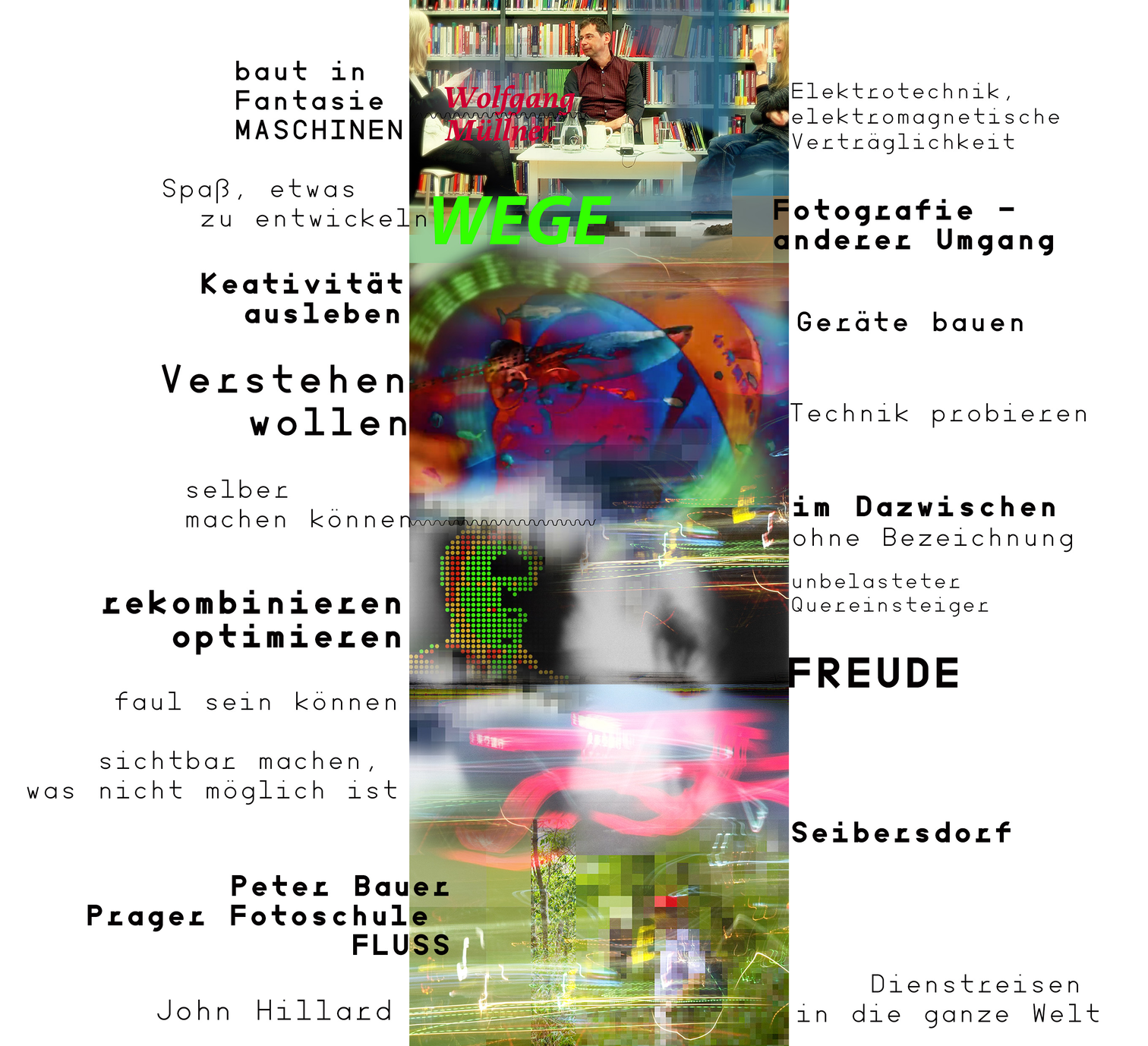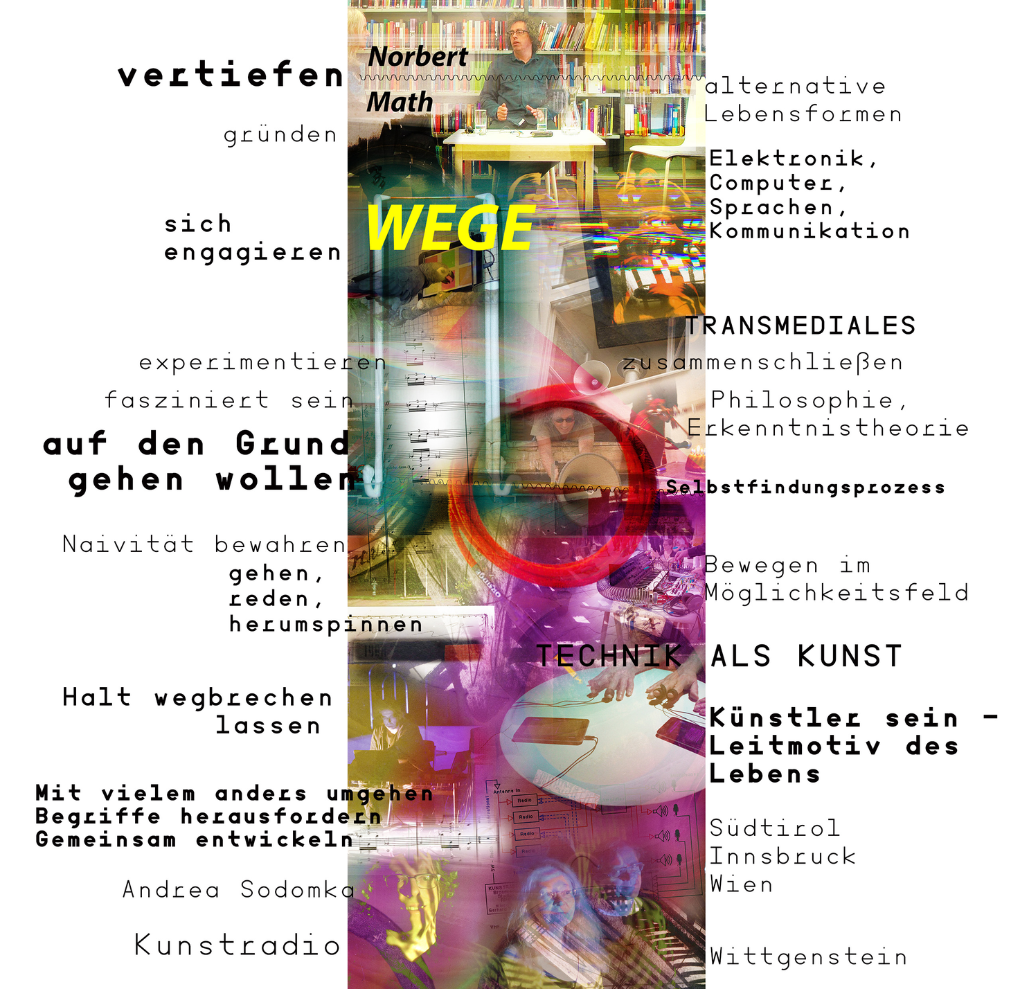...sich in Raum und Zeit erzählen Gespräche ueber Haltungen, Vorgehensweisen, Lebenswege, kuenstlerische Konzepte... im Dazwischen. Das Interdisziplinaere hinterfragen, mit Menschen deren Wege und Erfolge in Zwischenraeumen daheim sind.