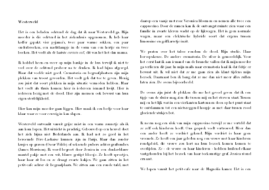 Er rent een kind in een zwarte jurk door de gang als we langs de ovens lopen. Haar moeder loopt achter haar aan. We kijken hun na en lopen dan de ruimte in die zij zojuist verlieten. De ruimte van de oven is volledig betegeld met roest,bruin kleurige tegels en heeft geen ramen. De oven gaat hoorbaar aan en de geur van houtsnippers vult de kamer. Het is een indringende en drukkende lucht die in razend tempo elk hoekje en gaatje van de ruimte heeft gevuld.‘Je hebt nog geluk',zegt hij, 'het kan heel anders ruiken’.
