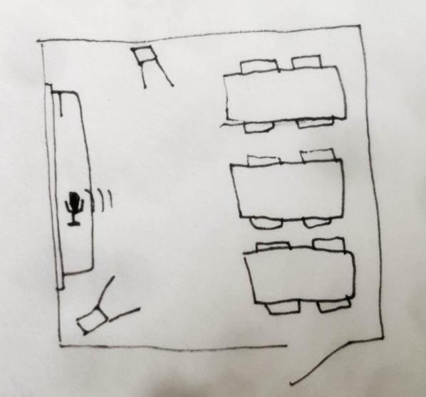 Placera ut två kameror och en mikrofon enligt skiss. [3]