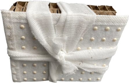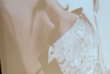 Using the same principle, I placed another piece of fabric, this time a piece of mattress protecor, under the box. The thin wavy curves reminded me of the wadden sea, so this time the spectaor saw a video of the wadden sea while touching the piece of fabric.