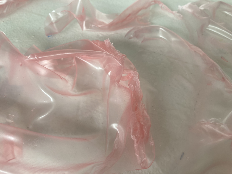I started experimenting with biomaterial because those flesh-like, fragile structures remind me of the human body . In a way, we are also biomaterials.