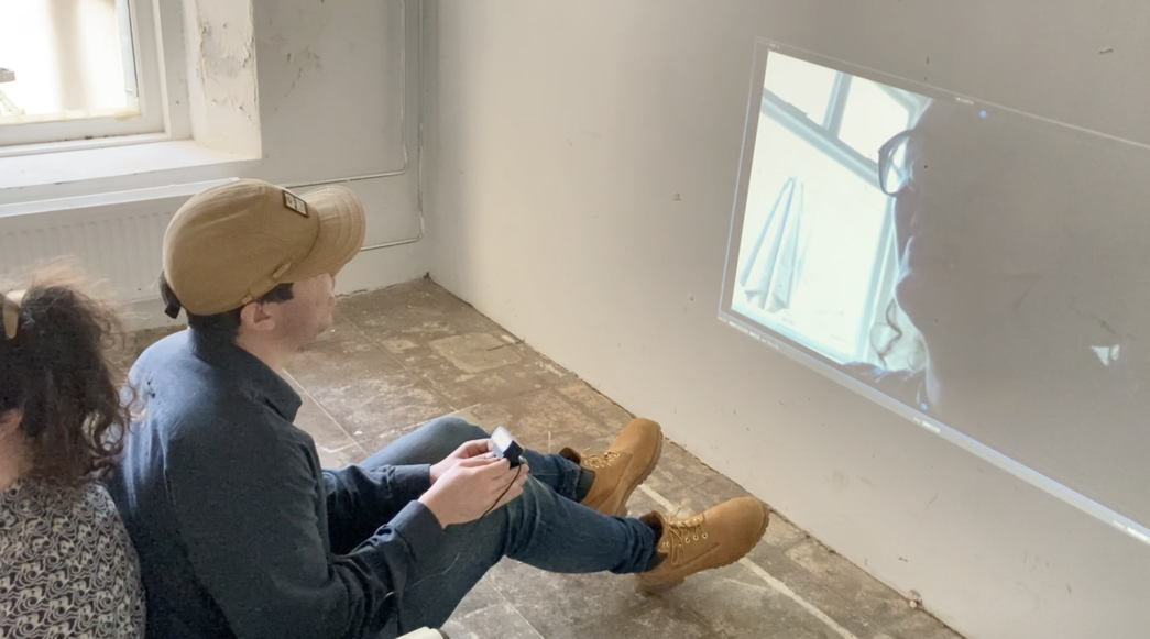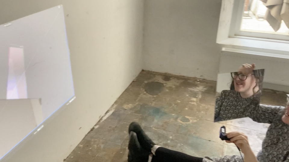 After speaking to the spectators, they told me that they felt disoriented because of the mixed realities. They started mirroring each other to feel safe. Touching each other let them feel more secure and less lost as they explored the space together. They were looking together for safety in a lost place.