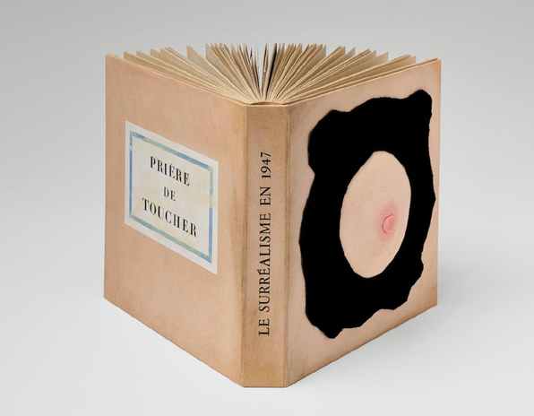 (...) in 1947, Duchamp created a three-dimensional rubber breast on a black velvet background. He calls this piece Prière de toucher or Please touch. It was dedicated to Duchamp’s lover Maria Martins. This piece was designed to be the cover for a luxurious edition of the catalog called Le Surréalisme en 1947. The catalog was to accompany the exhibition Exposition Internationale du Surréalism. In contrast to most art, touching this work, is not only allowed, but encouraged.