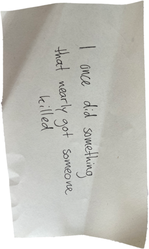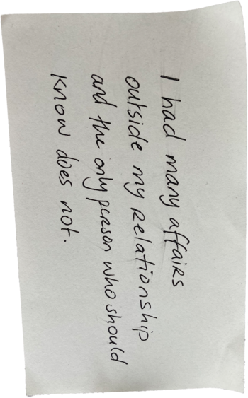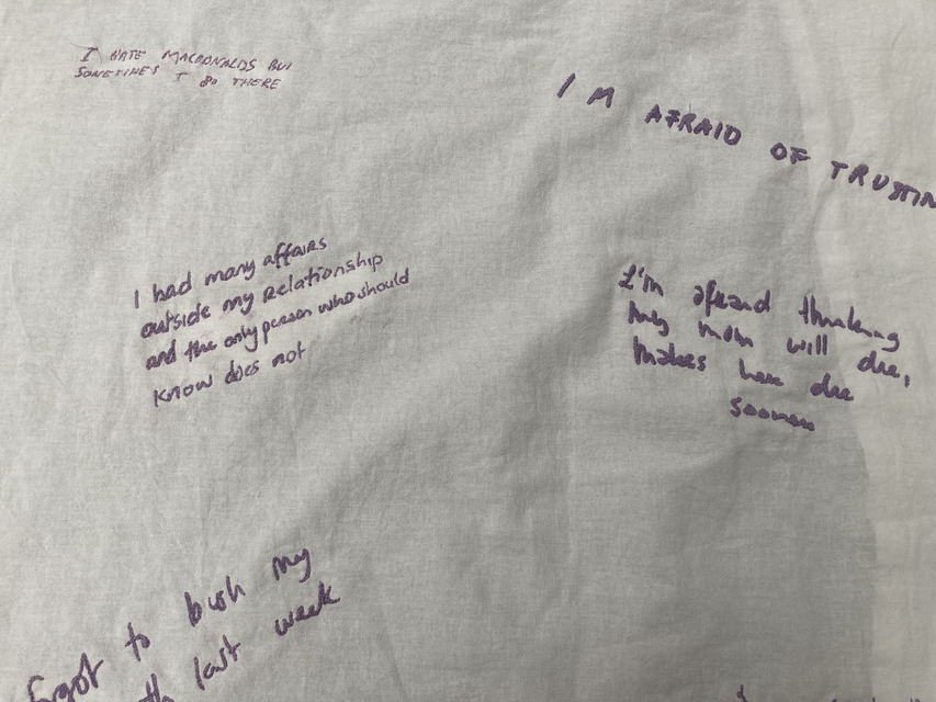 During one of my presentations, spectators had to write a secret on a post-it and then tape it under a bed that I was pretending to sleep on. One by one, the spectators had to enter the room and make a confession, with me being present. Only a 2cm thick piece of wood was separating my body from the secret below me. The most interesting part actually started after the presentation. Some spectators seemed genuinely upset that I was asking for something as personal as a secret without permission. I realised that asking strangers such a thing can get people very upset. A secret should stay a secret, right? Who am I to ask for such a thing? That brought me to the question: