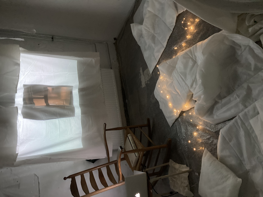 I sat in a rocking chair in my pajamas and read a letter to myself. The audience had to sit very close together on the floor, the bubble wrap caused little - pop - here and there.The air was filled with uncomfortable comfort. One comment stuck in my mind: