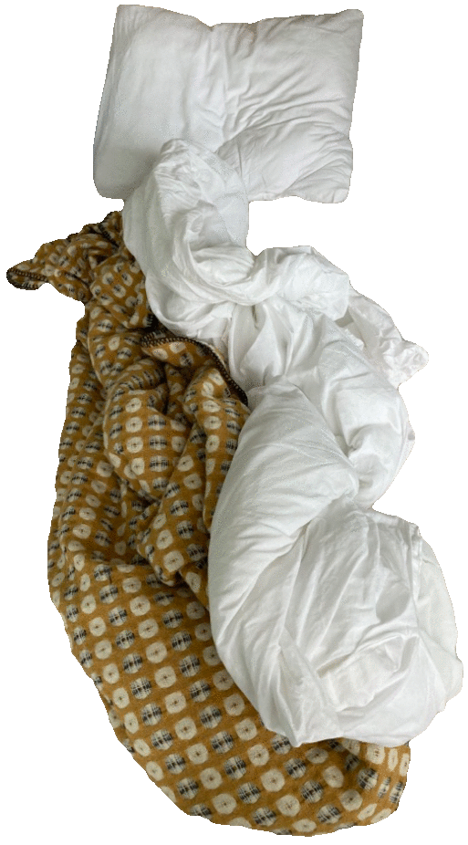 Instead of a blank projection, there was a pre-recorded video of me lying in the same position and on the same blanket as the spectator before. The spectators had to reorient themselves on the sheets and were now confronted with my presence and the sound of a human breathing filling the room. After a while, my pre-recorded self turned its head and stared directly into the webcam, towards the spectator.
