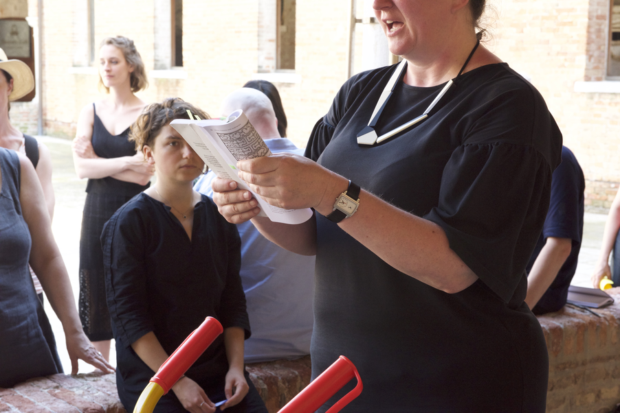 Image: Emma Cocker, Reading Between the Lines, in Convocation, June 2019, Research Pavilion, Venice. Photographs by Mika Elo and Katja Hock.