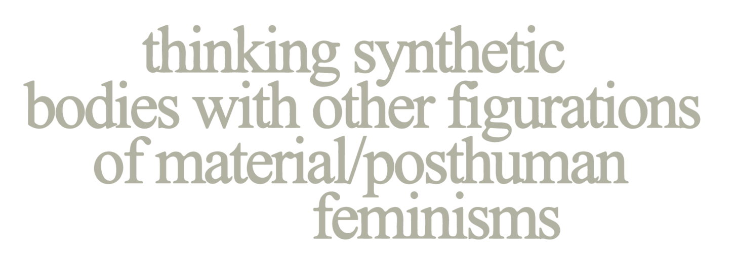 Synthetic bodies are ever-changing bodies in the constant process of synthesizing and becoming. the figuration of synthetic bodies refers to biochemical and chemical synthesis involved in the compositional processes of our bodies. Chemical synthesis performed in a laboratory is a complicated but regulated process of producing new molecules, involving human actors, chemically active substances, chemical reactions, catalysts, protocols, and techniques. the concept of synthetic bodies connects the molecular level of chemical reactions with the macro world of organisms, acknowledging the increasing amount of industrial chemicals involved in the constitution and functioning of our bodies.