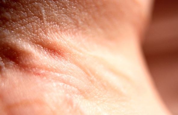 A scar from being beaten as a child