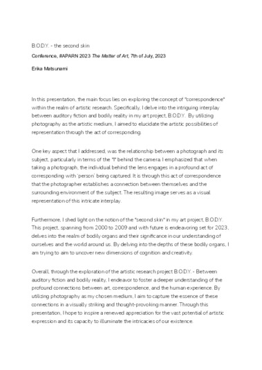 The sound composition between Else Marie Pade and Erika Matsunami (me) B.O.D.Y. (how it relats to my artistic research B.O.D.Y.: