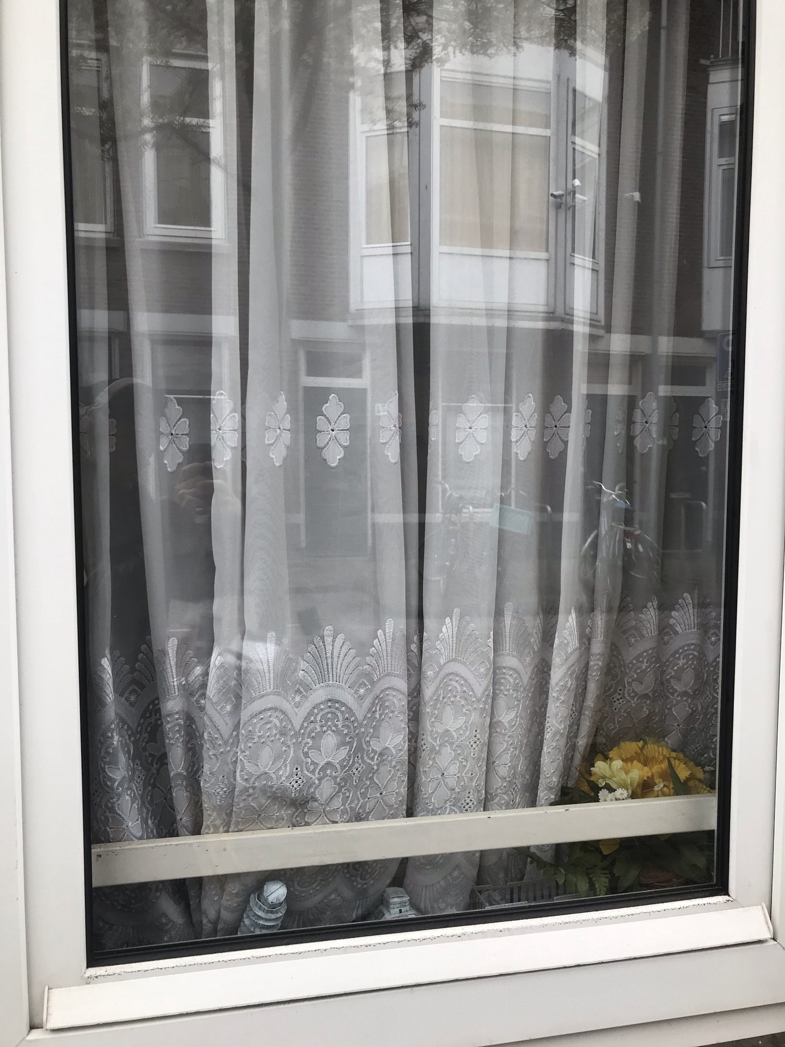 During my many walks to find lace, surrounding me, I quickly came to the conclusion that curtains are one of the most popular lace crafted objects in the Schilderswijk area, on which I based most of my search around. The reason for this lace curtain conclusion could be the racial and ethnic diversity. It is a neighbourhood in The Hague, which is considered a super-diverse city. Super-diverse can be communities or cities that have no majority of any sort. Thus it means that every group is a minority.1 Schilderswijk is populated by almost 90% of people who have non-western migrant backgrounds such as Turkey, Surinam and Arab countries.2 In many of these countries, Islam is the main religion that blends into their cultural practices. For example, Muslim women have to cover themselves for religious practices and the home becomes the place where this does not have to be practised. My speculations are that curtains, especially lace, create the privacy Muslim women want in their homes, while still letting light through the windows. In Arab culture, privacy is an important matter.