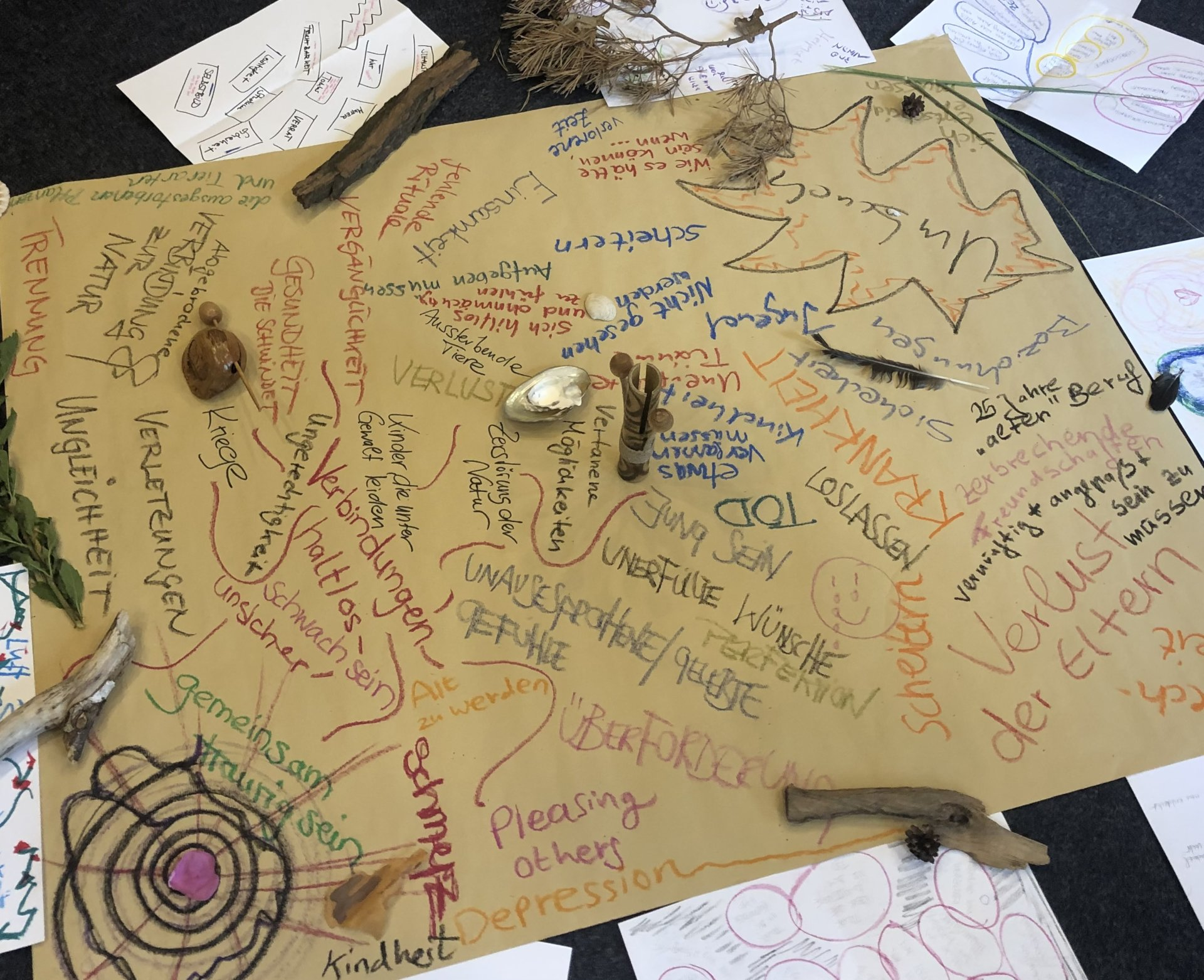 Participants will be invited to contribute to a collective collection - in words or drawings - of things, aspects, elements which ask for grief work: for time, space, attention, thought, emotion, movement and more.