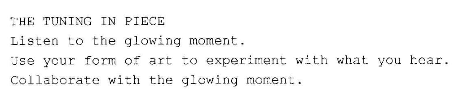 Through this exposition you’ll find two pieces, THE GLOWING MOMENT PIECE and THE TUNING IN PIECE. These pieces are inspired by Yoko Ono (1967) and her 'instruction pieces', which are meant as prompts and instructions to create your own artistic expressions and performances. What I intend the pieces to do is to work as prompts to inspire, motivate, push, invite, provoke, and stimulate responsiveness and openness towards and with the research material.
