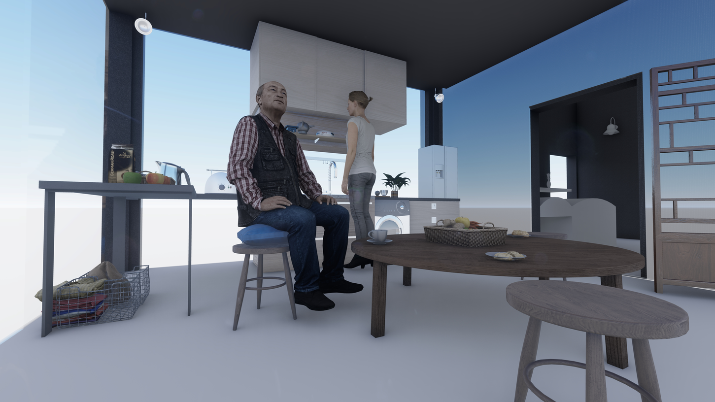 The Living Function Box provides a place for homeless or homeless families to eat, communicate and make simple meals. Just like a public place, some of the daily life functions needed in the family are collected into this box. To facilitate the lives of the homeless.