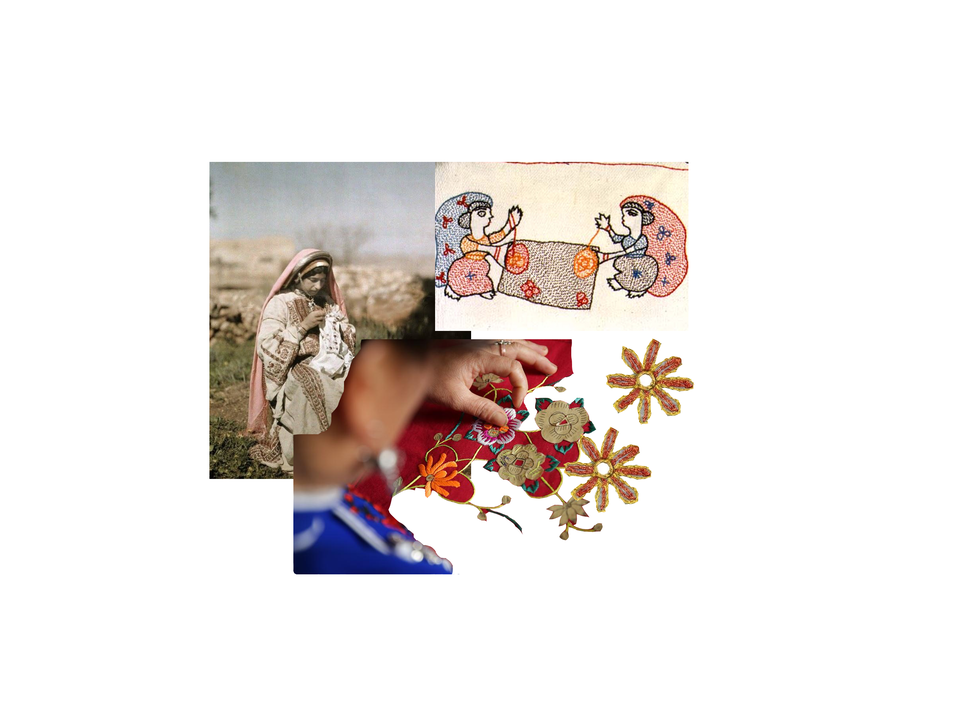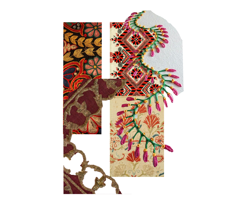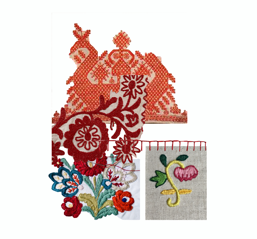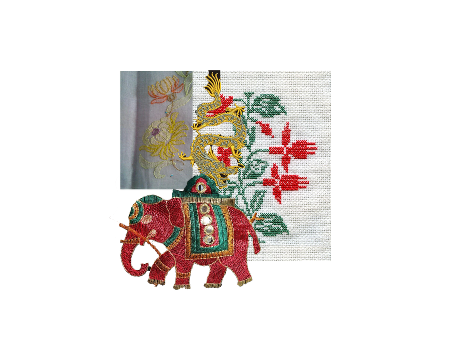 Collage about symbolisms in Embroidery , the elephant from India and the dragon from China.