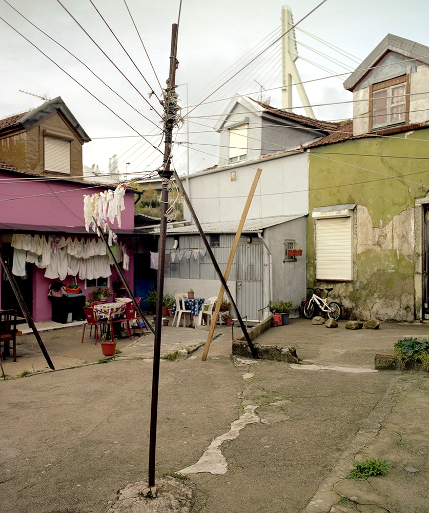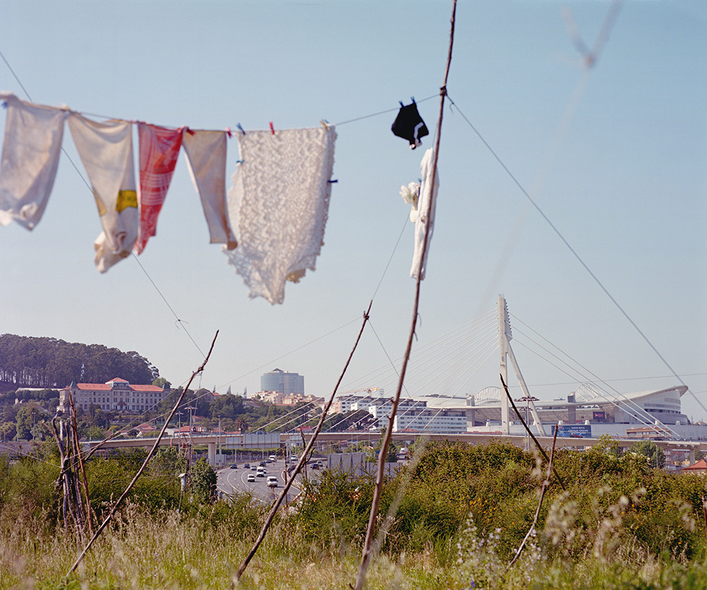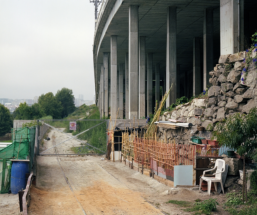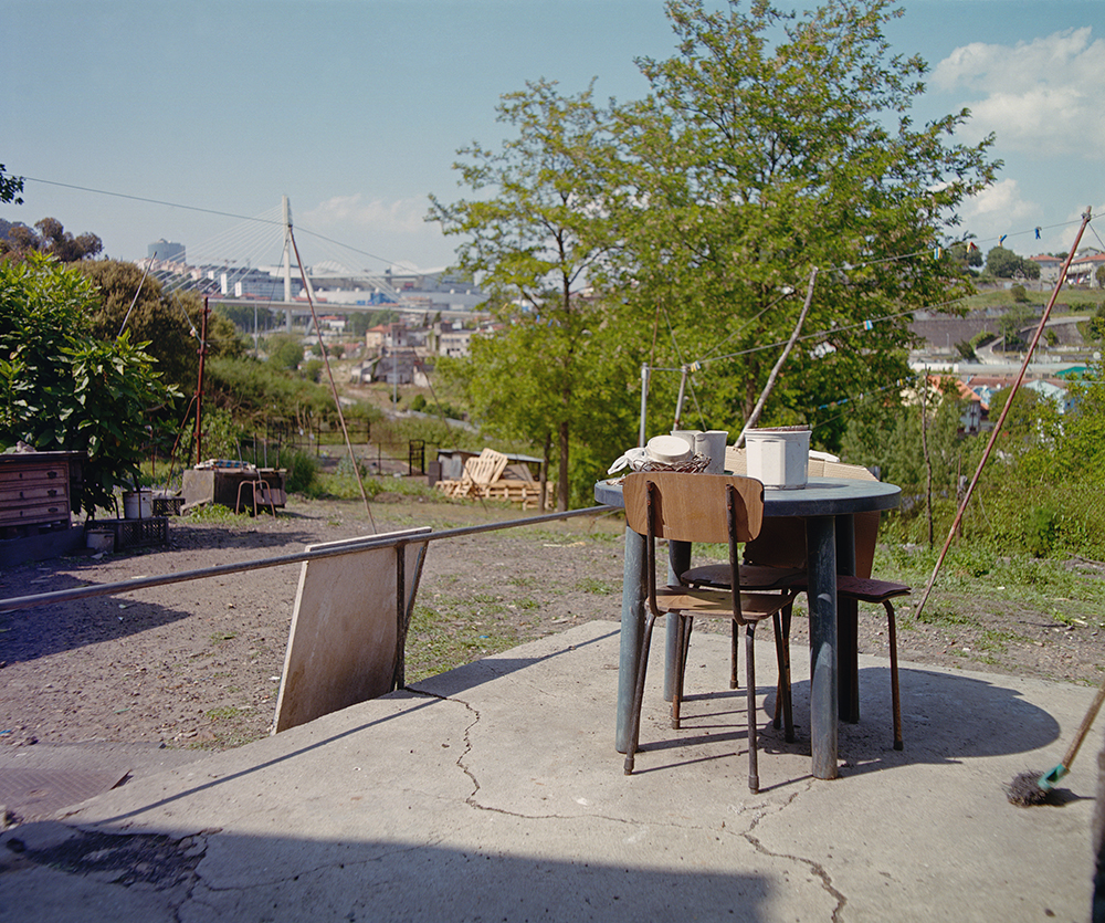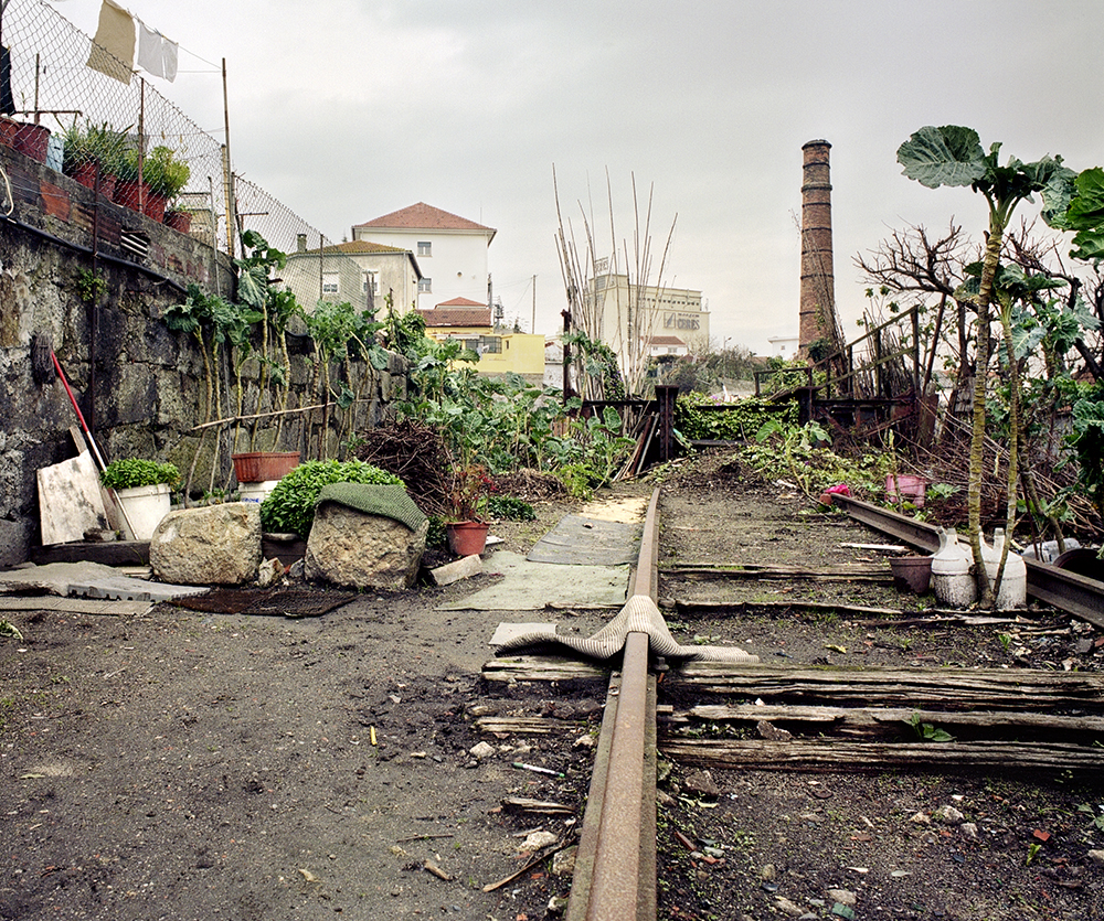 Sossego City is a disorderly, disproportionate, and noisy territory. Its urban fabric is a patchwork, torn by motorways and railways, where the frailty of small, improvised constructions and the heavy solidity of the infra-structures that dominate the landscape, involuntarily connect. It is a scenery made of contrasts, built in different scales, modes and times. This series is about a mode of inhabiting this strange and unpredictable territory, about the ways through which its inhabitants domesticate it and make it their own. Surprisingly, the word “sossego” [quiet] often comes up when they talk about the places where they live. Thus, in these images, urban speed and violence are a backdrop against which a sense of calm and time can nevertheless be perceived. These are small spaces where rural and urban, public and private blend together, signs of a mode of living that doesn’t correspond to the contemporary concept of urbanity. Degradation is obvious, and these places, located in eastern Porto, are likely to disappear. But something about this way of life, with obvious roots in a rural past, seems to question the future. “Sossego City” is a perspective on a moment of the history of this territory, and a reflection on the hints it may provide for a reinvented way of inhabiting urban space. Sossego City was first exhibited at Centro Português de Fotografia, in 2012.
