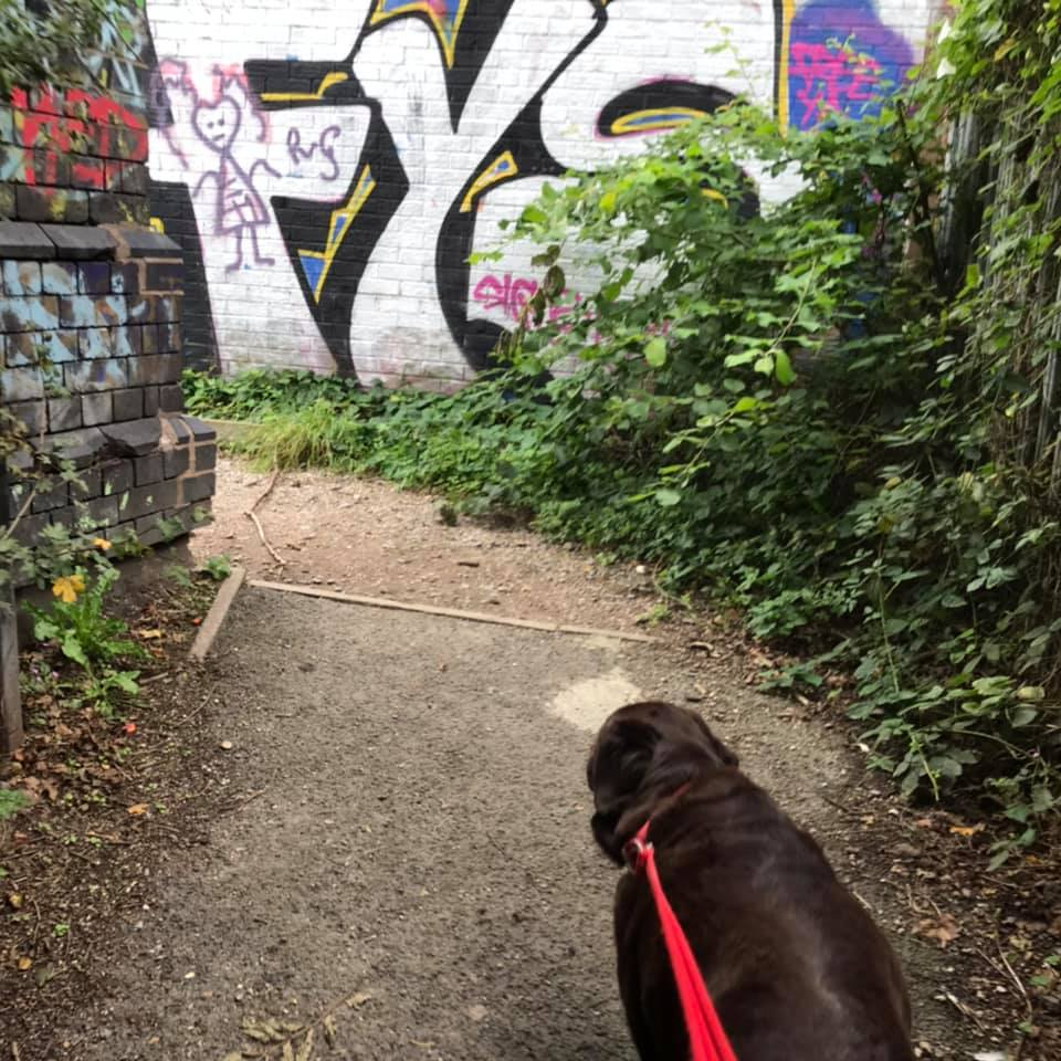 Head out on a walk with your canine companion. Allow your canine companion to choose the direction of travel and follow their nose (only intervene if you perceive a risk, e.g. a busy road). Privilege your sense of smell and sound, attend to the world as human-canine