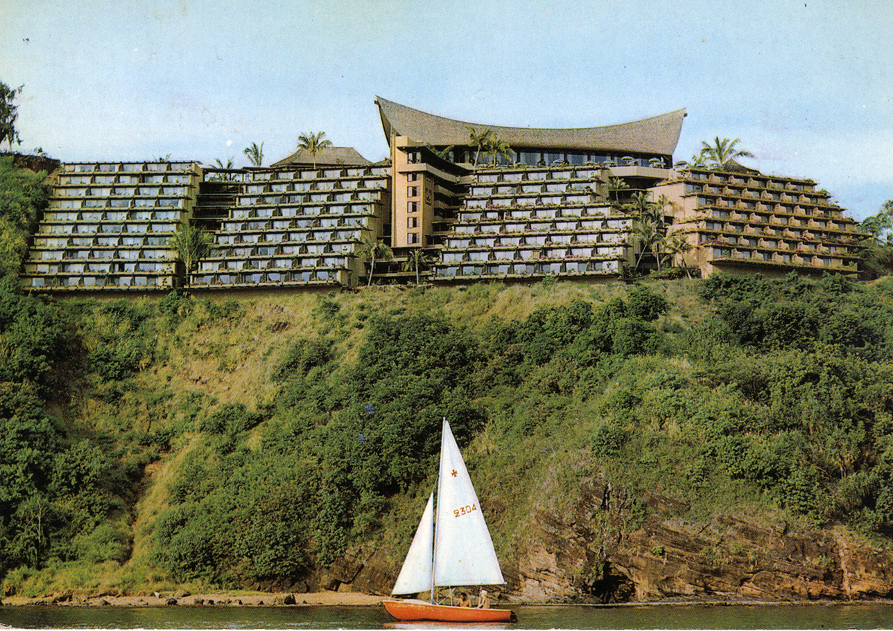 A conjuring of distorted memories, The Cliff brings you into view of a lost hotel whose siren song rings out in the darkness. Through the roving eye of the lens, promotional images of a tropical island resort become an otherworldly medium, resurrecting a space of commercial luxury and forgotten western fantasies through the media that helped to sell it.