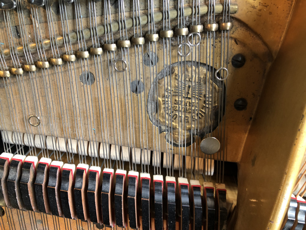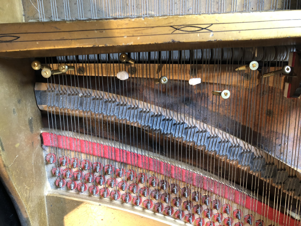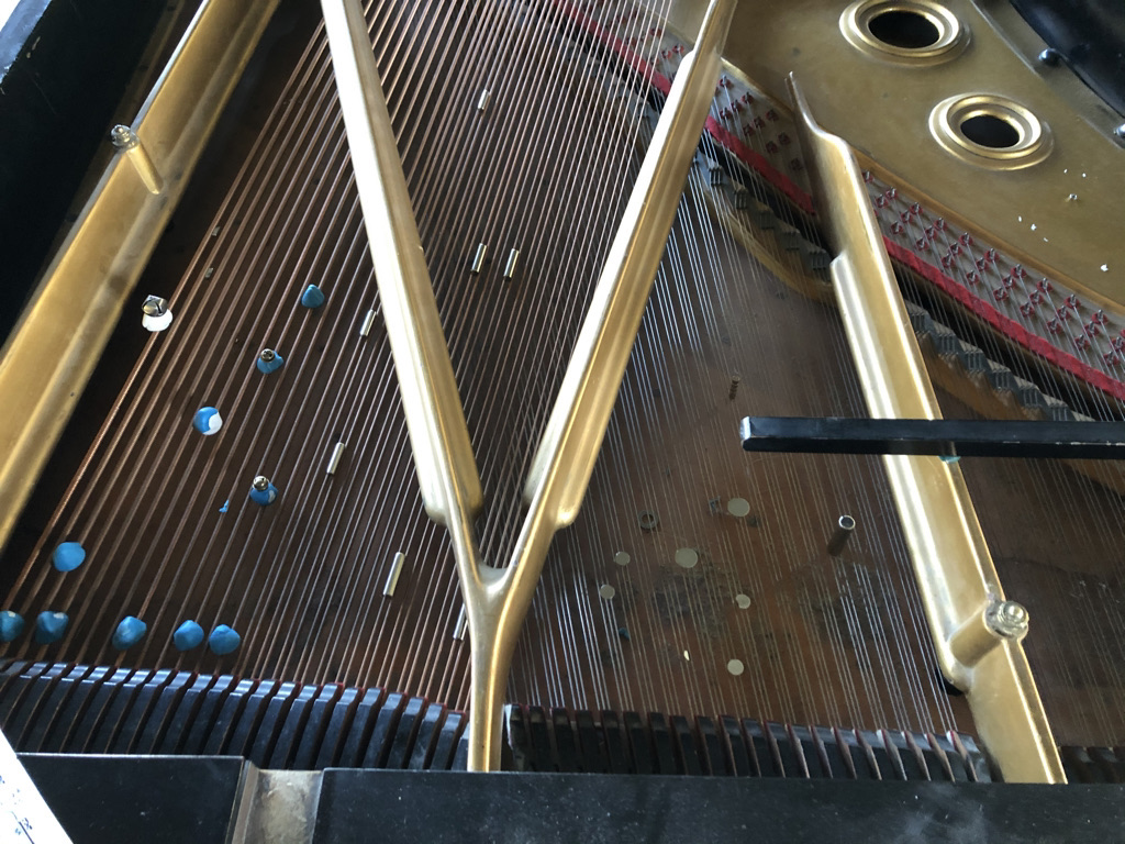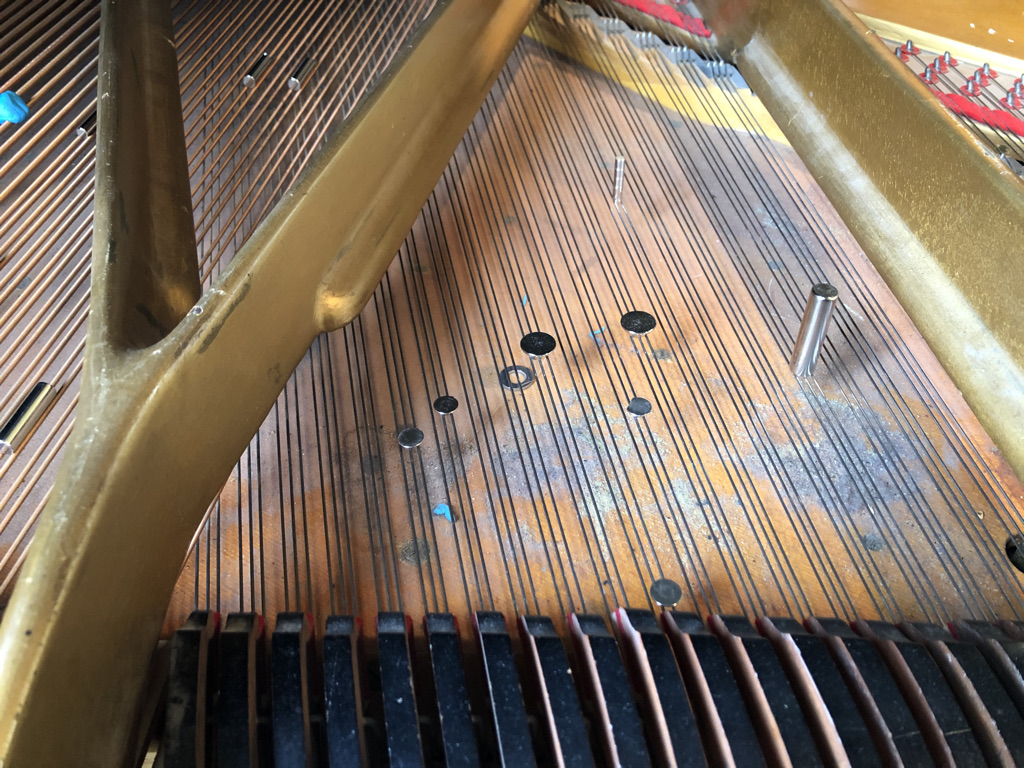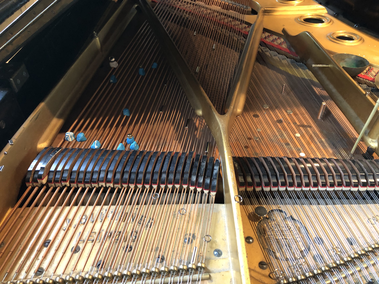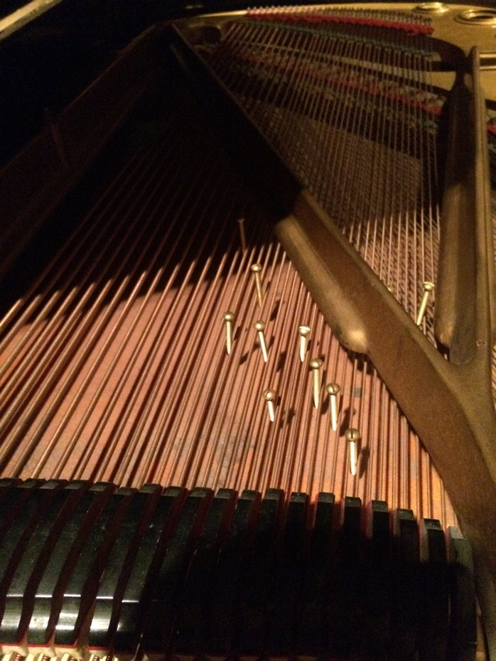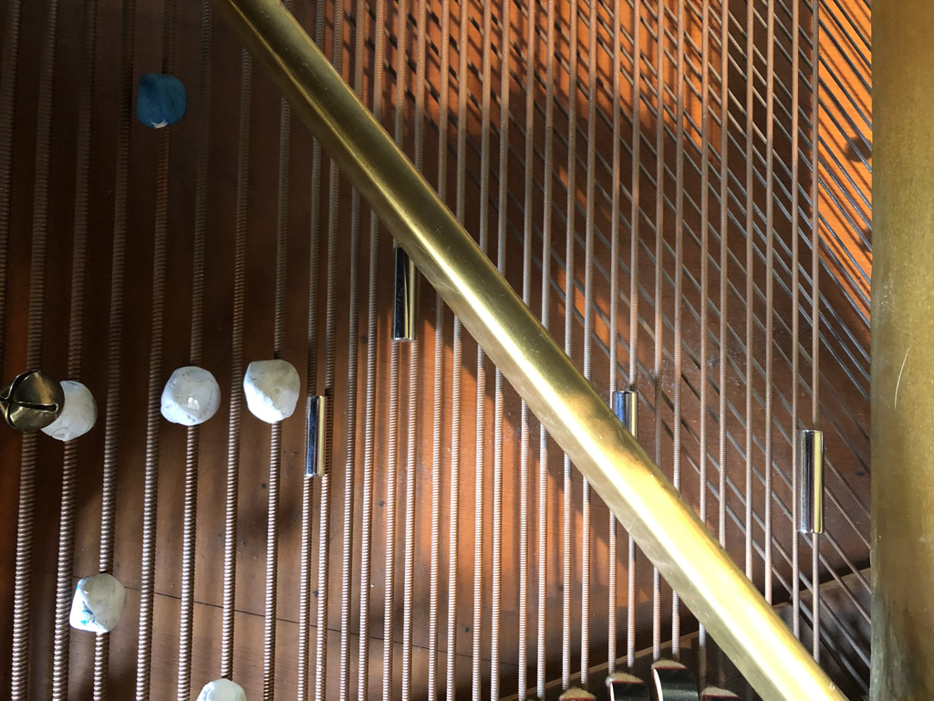 A prepared piano can be described as having its sounds altered by various objects placed on, or within the resonating strings. In my case, I’ve chosen to work with metallic preparations and almost exclusively, magnets of various sizes, shape and weight. These include cones, spheres, squares, cylinders, magnet towers, rings, and nearly microscopic magnetic shards for subtle sympathetic vibrations. I’ve also been working with screws, bolts, bells attached to puddy, horse hair, rounded metallic bowls and more.
