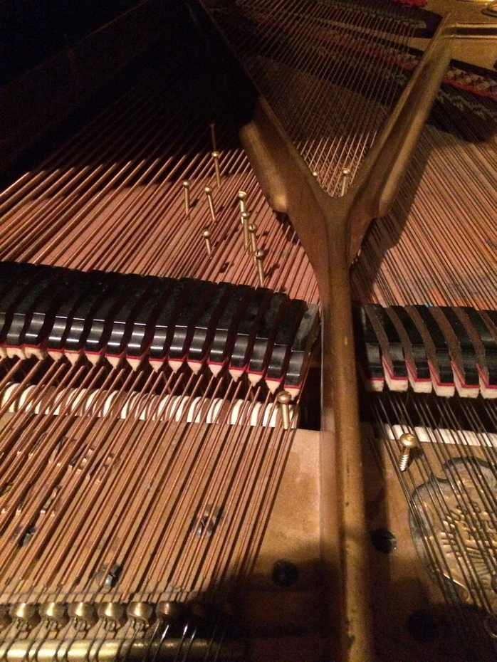 A prepared piano can be described as having its sounds altered by various objects placed on, or within the resonating strings. In my case, I’ve chosen to work with metallic preparations and almost exclusively, magnets of various sizes, shape and weight. These include cones, spheres, squares, cylinders, magnet towers, rings, and nearly microscopic magnetic shards for subtle sympathetic vibrations.  I’ve also been working with screws, bolts, bells attached to puddy, horse hair, rounded metallic bowls and more.