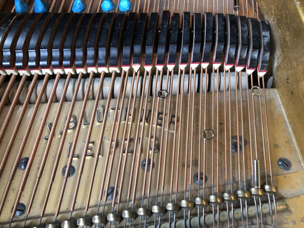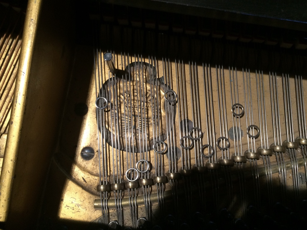 Placing the magnets on the strings of the piano, I’ve relied on my ears in finding the different nodes (zero amplitude) and antinodes (maximum amplitude) of various wave forms. This could relate to either a fundamental wave or the partial, or harmonic wave forms.