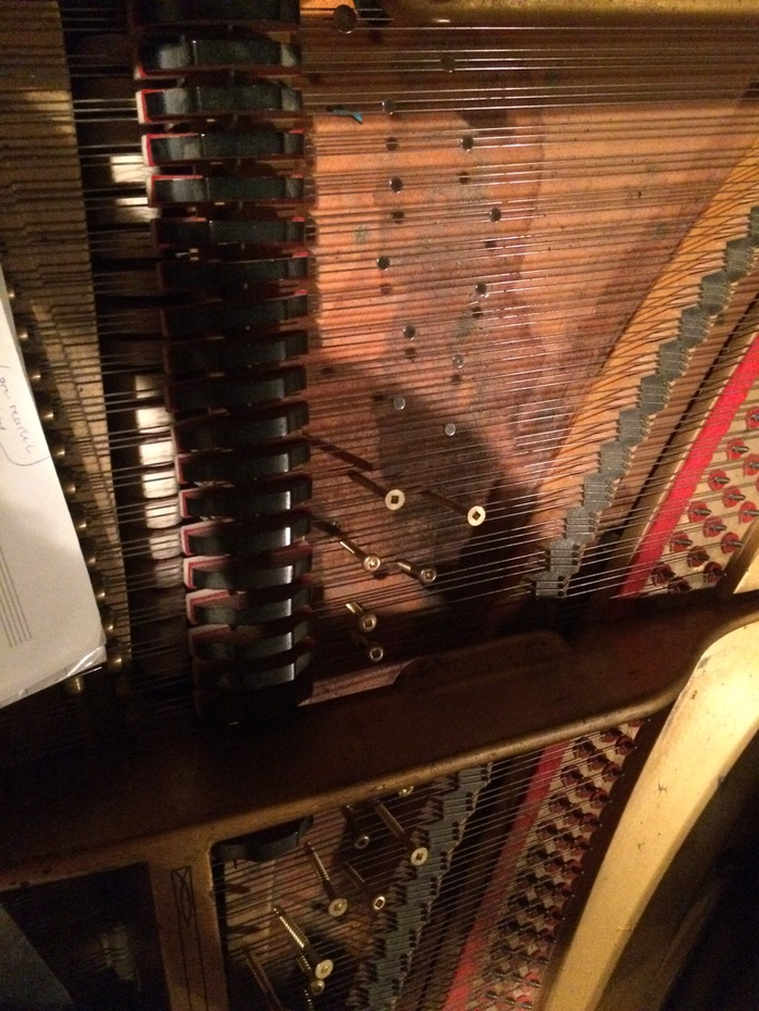 A prepared piano can be described as having its sounds altered by various objects placed on, or within the resonating strings. In my case, I’ve chosen to work with metallic preparations and almost exclusively, magnets of various sizes, shape and weight. These include cones, spheres, squares, cylinders, magnet towers, rings, and nearly microscopic magnetic shards for subtle sympathetic vibrations.  I’ve also been working with screws, bolts, bells attached to puddy, horse hair, rounded metallic bowls and more.