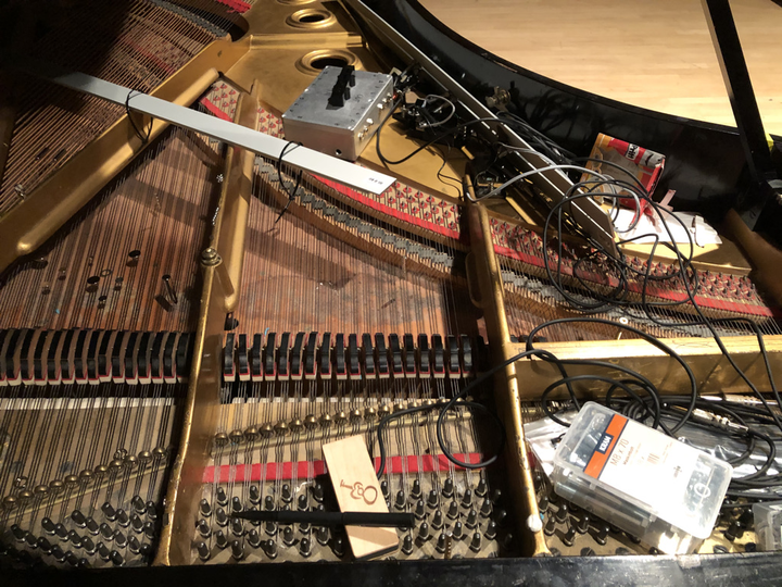 The idea is to give autonomous movements to single or groups of magnetic pickups. I’m trying to confront the expected stationary spatialization that comes with a grand piano. I’m interested in creating disorientation, ambiguity and illusion and challenging the perceivers expected ideas of where sound should emerge from. Preliminary tests were encouraging, in terms of feeling the spatial movement of specific and groups of pickups.