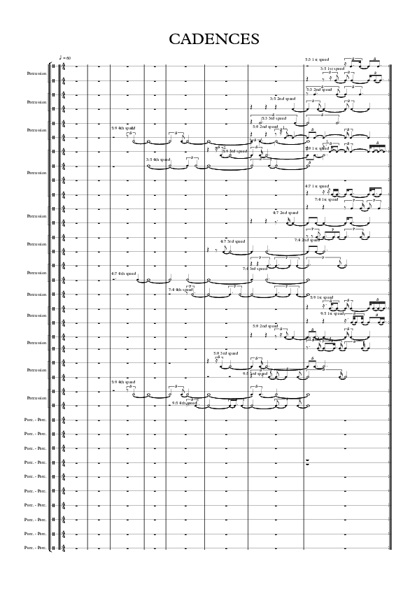 I conceptualize and embody rhythmic counterpoint as composite interference fields. Each ensemble member is a cadential voice (patterns of stress and release) that converges and diverges with the surrounding layers. In this landscape one can find moments of full ensemble unison, partial ensemble unison and varying degrees of divergence with one another.