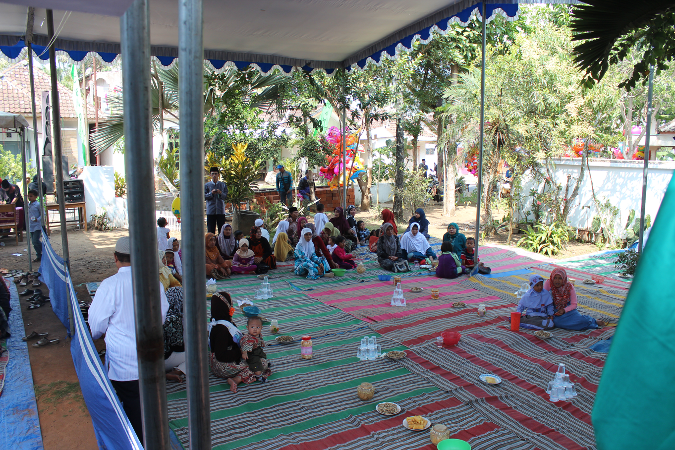 One of the first things I noticed on the courtyard were the huge speakers. In Java, even in events where music is not the main focus, one needs to have loud sound reproduction with substantial speakers. There were two sizeable stacks of them in the smallish courtyard, effectively creating an enclosed space for the gathering. A small stage had been constructed for the occasion, crammed between the house, the courtyard, and the speaker stacks. The courtyard was bisected by a cord and several sheets, effectively segregating the space into distinct areas for women and men. When sitting on the ground, the sheets blocked the view to the other side. On the men’s side of the courtyard, next to the stage, was a small concrete veranda attached to the house, raised slightly above the ground. This was for the guests of honor, I realized, as my friend led me there. Some mats and snacks were laid out on this veranda. I sat cross-legged among the other men already there. After introducing me, Ahmad walked away to continue with the party preparations.