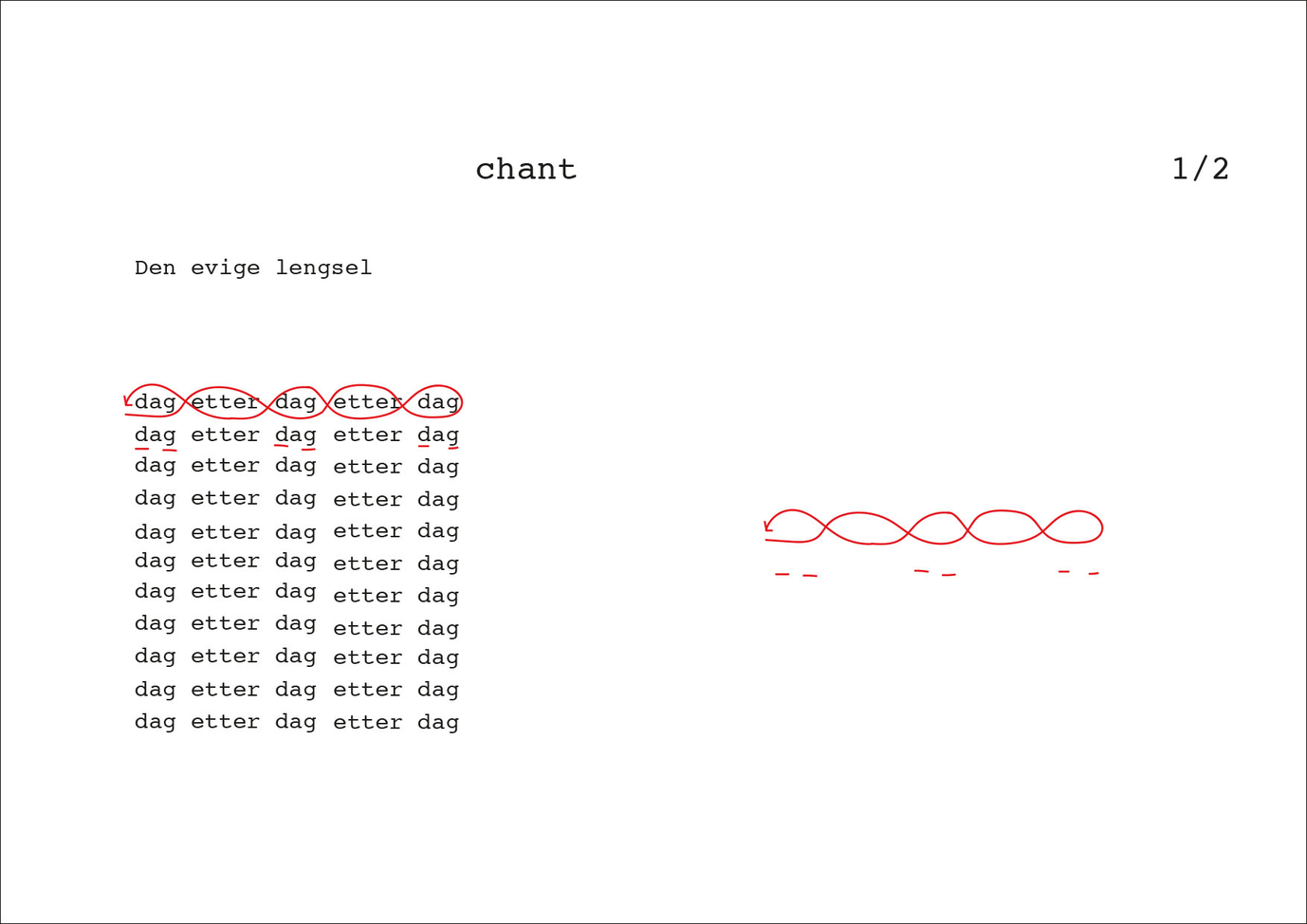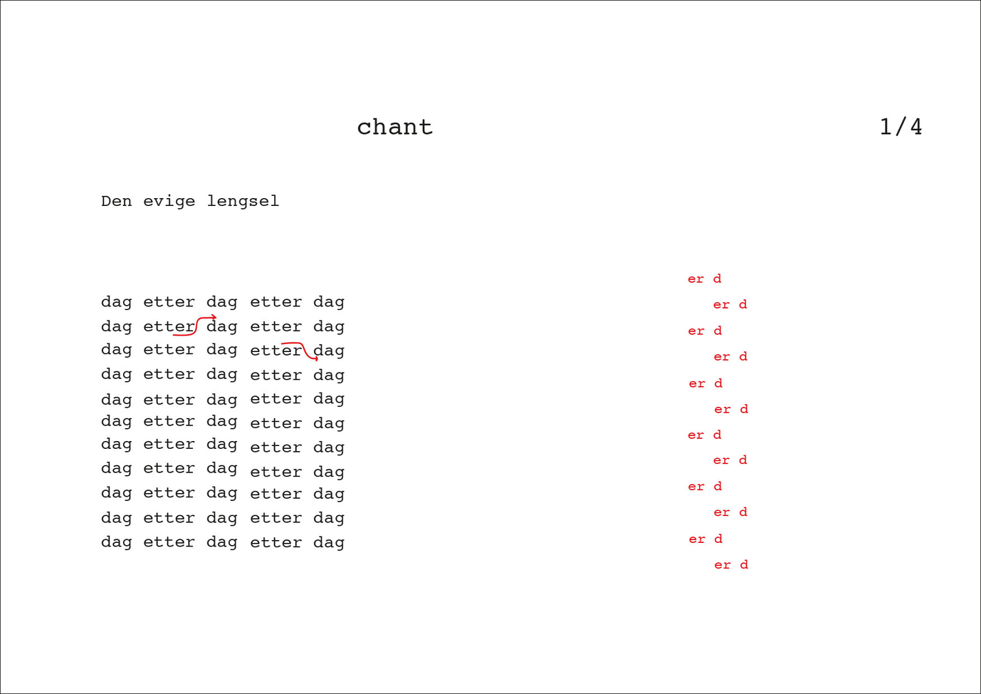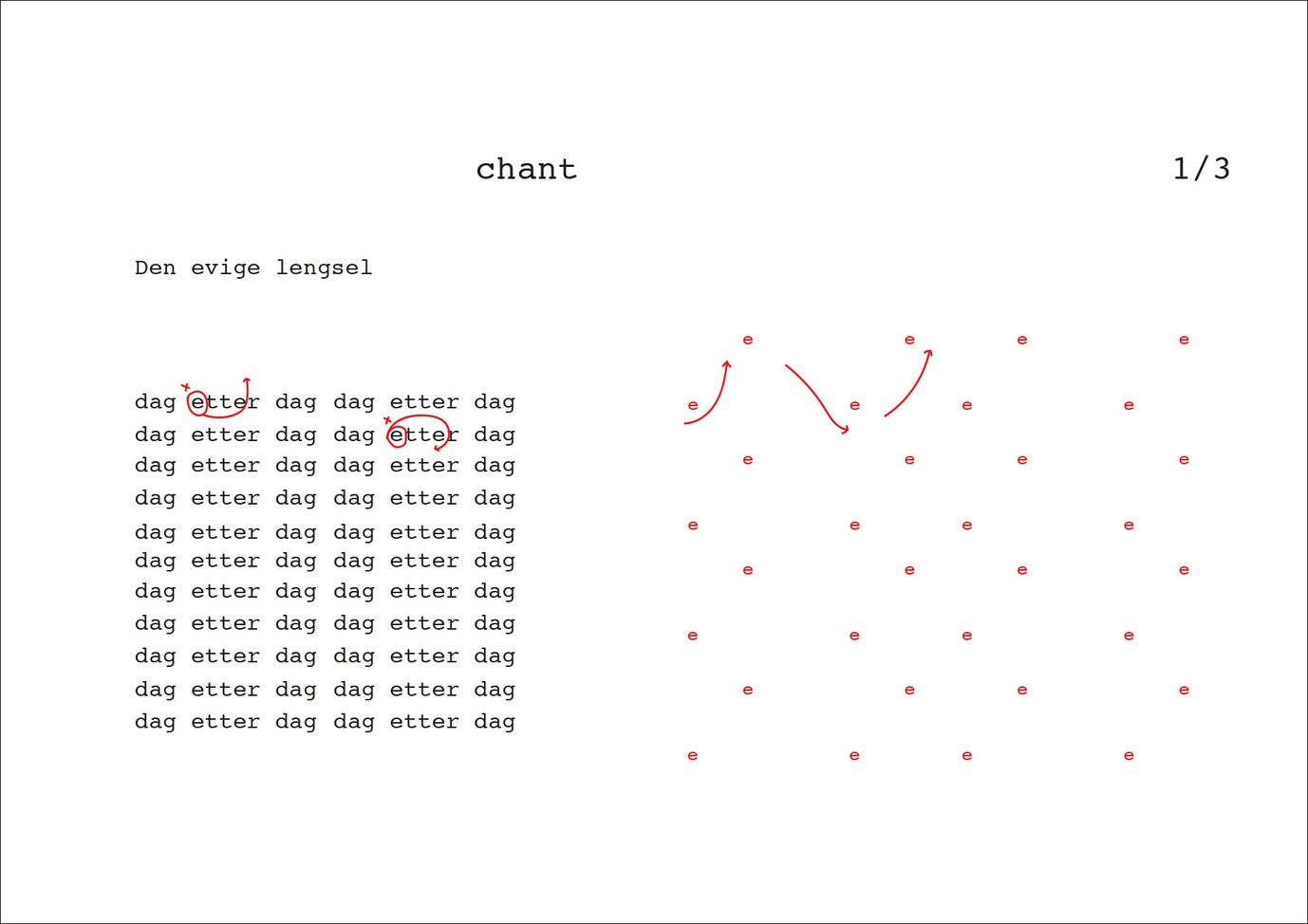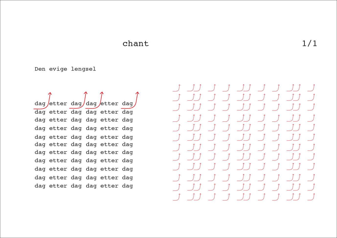 You can compose your own vocal composition/ensemble by [dag etter dag], turning on all the voices at the same time or combining them one by one, choosing [dag] from one chant and [etter] from another and etc.