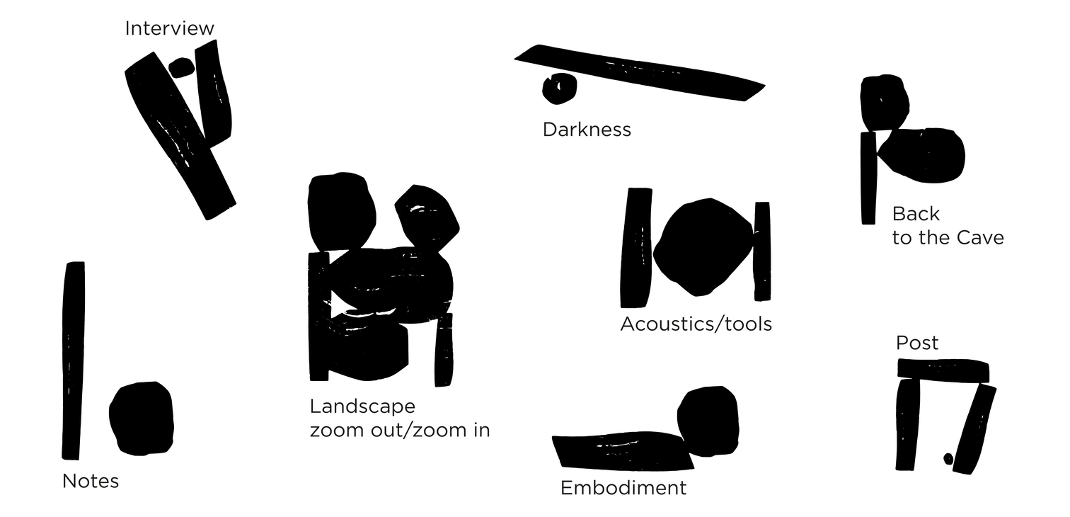 On this page, we kindly invite you to take an audiovisual journey through our notes and experiments from our field trips in Sørøya, Norway. Each experiment was a response to the state of the landscape at the time and the (im)possibility of finding the way to the caves.