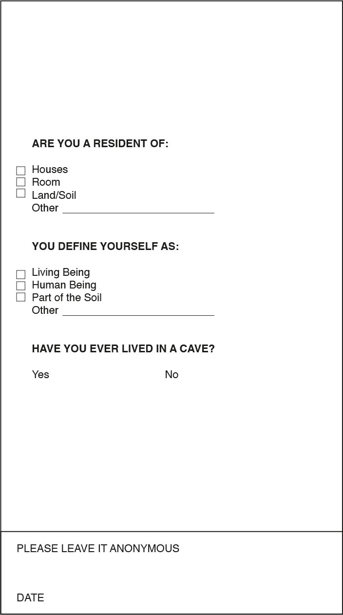Your own body becomes the instrument for ambient sound. Reflecting this sound, forming a distance between the sound streams that circulate in the environment, the sound freezes inside the body, going into the very depths of the soil with which we come into contact again and again. The soil retains all those sound vibrations, just as we keep all those sounds of the voices of the inhabitants that become our own, inseparable from the landscape and overlapping in time. The sound forms an infinite interval that materializes through the layering of the soil and us in it.
