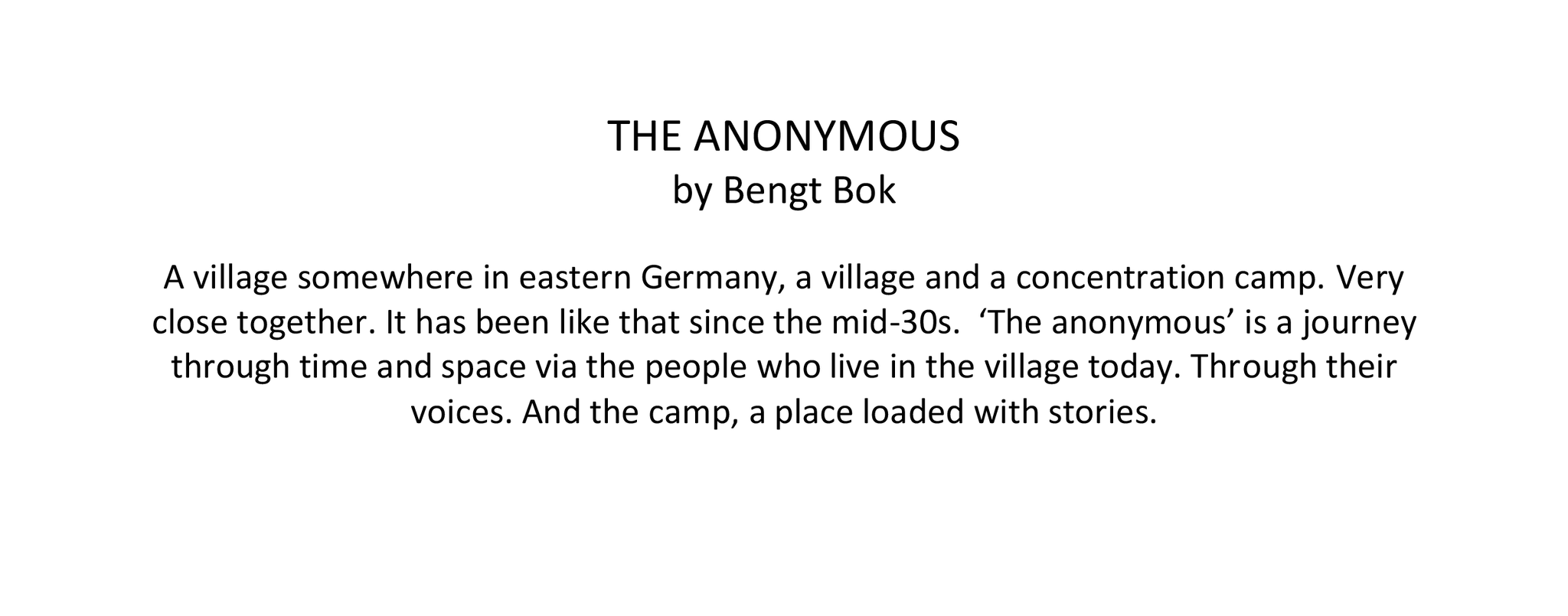 Ljudverket, det dokumentära radiodramat De anonyma, är del två i expositionen. Verket hade premiär på Sveriges radio P1 2019.