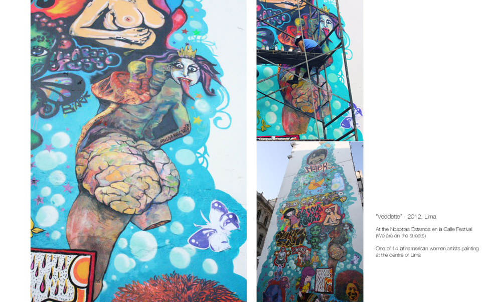 Collective public demonstrations have been an emblematic part of feminist movements in connection with the struggle against violence toward women in the Global South. One initiative I am part of is the collective Hysterix (Lima, 2012) formed by women artists, all with different backgrounds in Peru. Our collective focuses on interventions in public spaces with visceral performances and live paintings or murals.