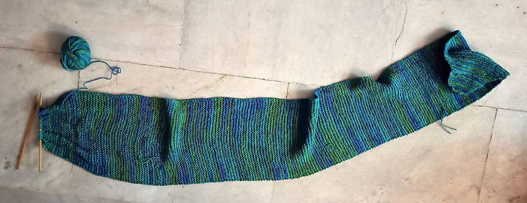 I’ve also been knitting for months now, the piece has grown into a scroll and resembles the process and path of a walk, with hands, very slowly, one step/loop at a time. It is as meditative or even more than walking, since it takes a long time and the gesture repeats in its most detailed and minute form. I’m enjoying it and not thinking about completing the piece, partially because I don’t know where and when to stop.. when do I reach the destination? Is there a destination? Or I might just keep walking (/wandering) while living in-between, and it doesn’t matter what comes next because the present is building in my hands, holding and releasing; looping time between the needles..