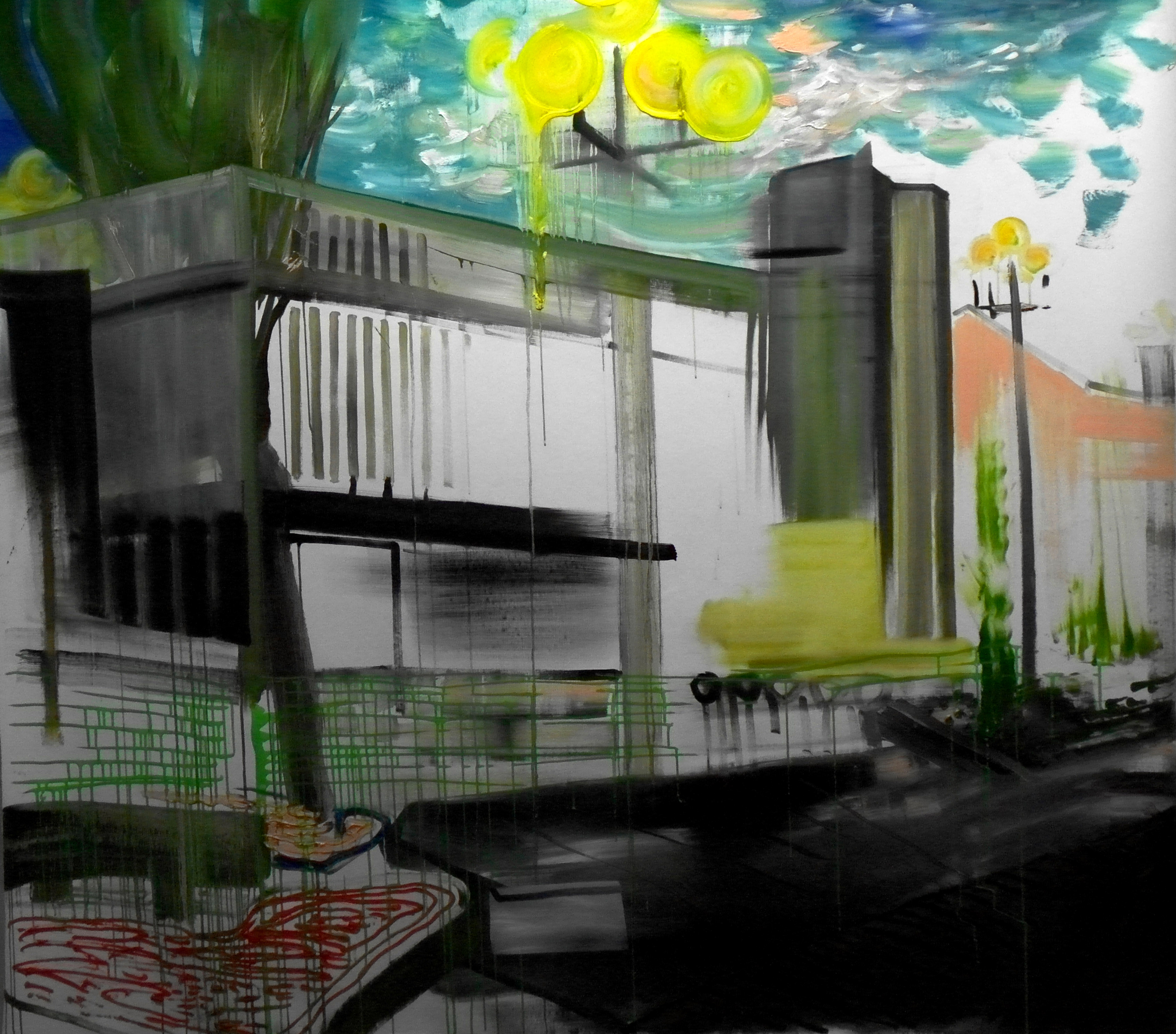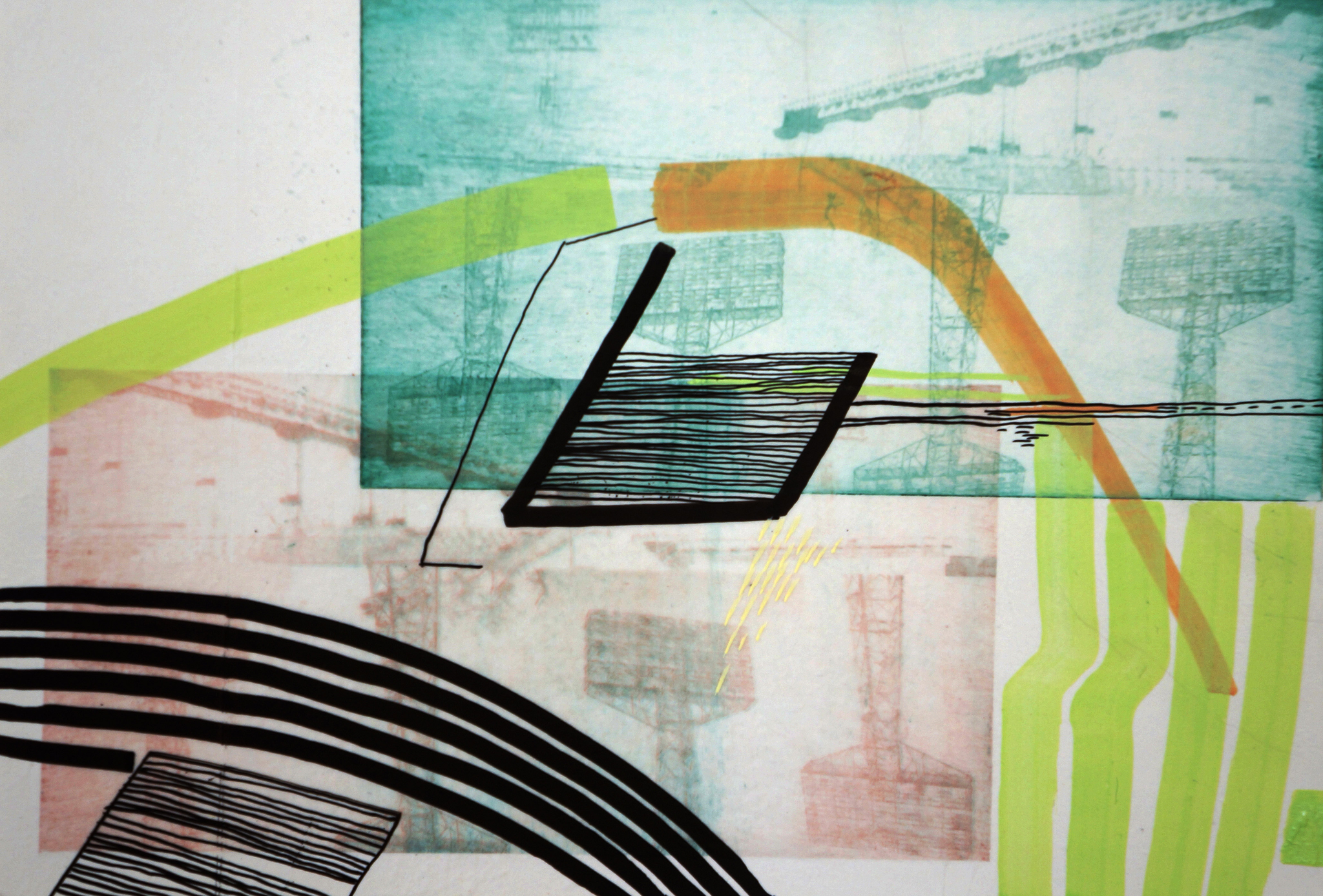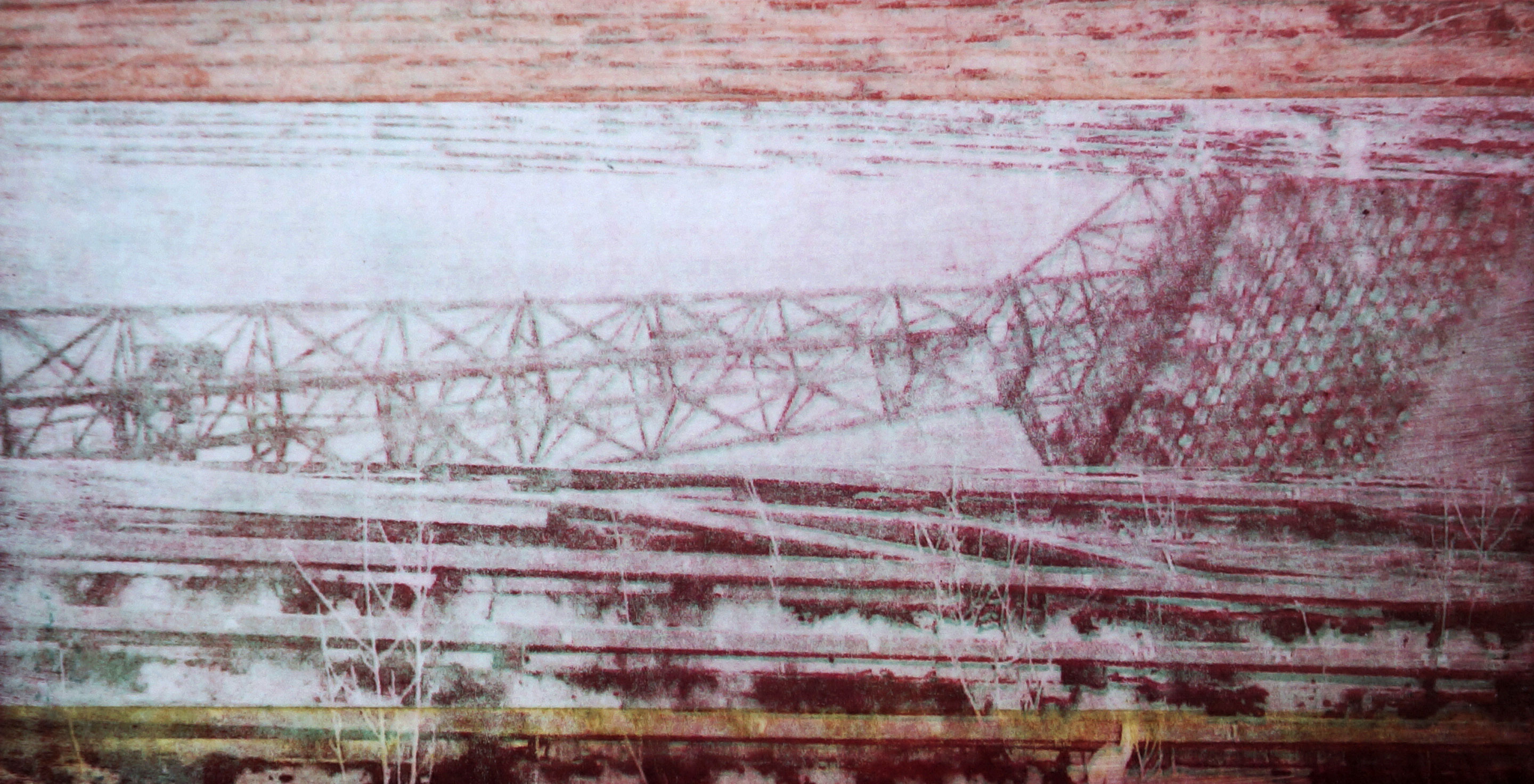 The series of artworks titled "Construction" has spanned several years and various mediums, with the primary results being printmaking pieces in lithography and photogravure techniques, as well as paintings. Throughout this process, it was crucial for me to align my work with the technical nuances of each medium. Leveraging the capabilities of photogravure for digital image manipulation, I incorporated fragments of materials collected from public spaces and architecture.