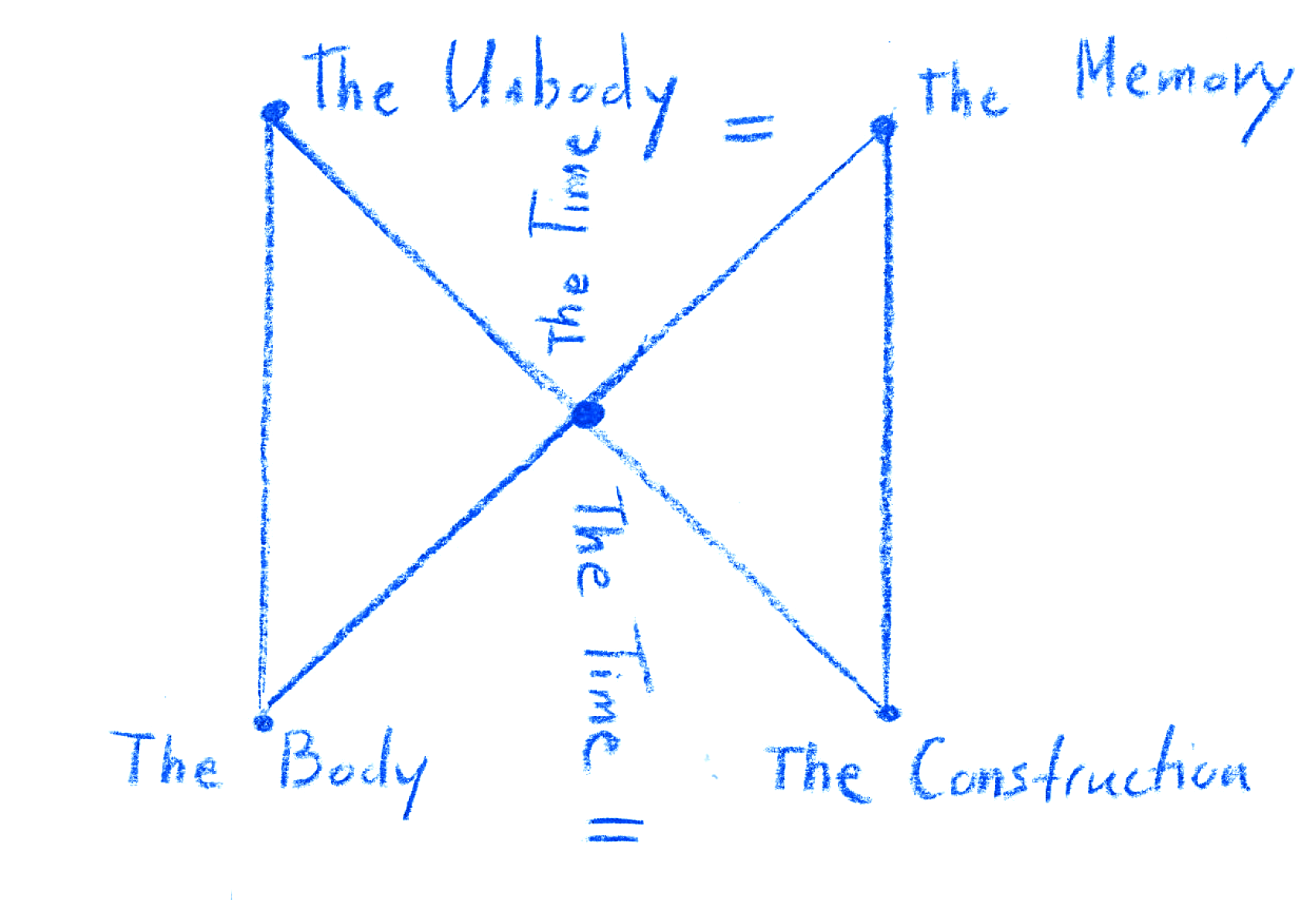 I will explain the relation between the Unbody and the Body through Time, Memory, and Construction, and the potential consequences of this relation on the development of the Unbody concept. The Body is a constructed system of abilities and limits, and the Unbody's inseparability from the Body is its limitation. Starting with the triangular shape of the Unbody-The Body-Time, I propose a mirrored relationship between the Unbody, Memory, and Construction. By Construction, I refer to the architectural constructs in a given city, which represent the bodily presence of a particular style and aesthetic and allude directly to the time of their architectural design. Similar to how the Unbody cannot exist without the Body, Memory is shaped by and linked to Construction, while Construction hosts the narrative of Memory.