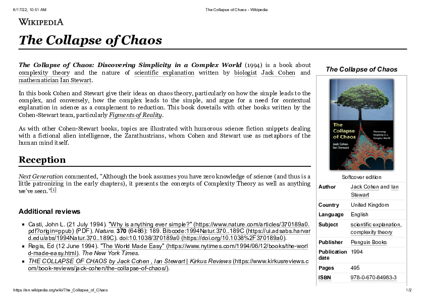 Is het dan zo dat, in dit voorbeeld, chaos de conventies die we maar aannemen kan openbreken en dus misschien juist voor verwondering/inspiratie/... kan zorgen?