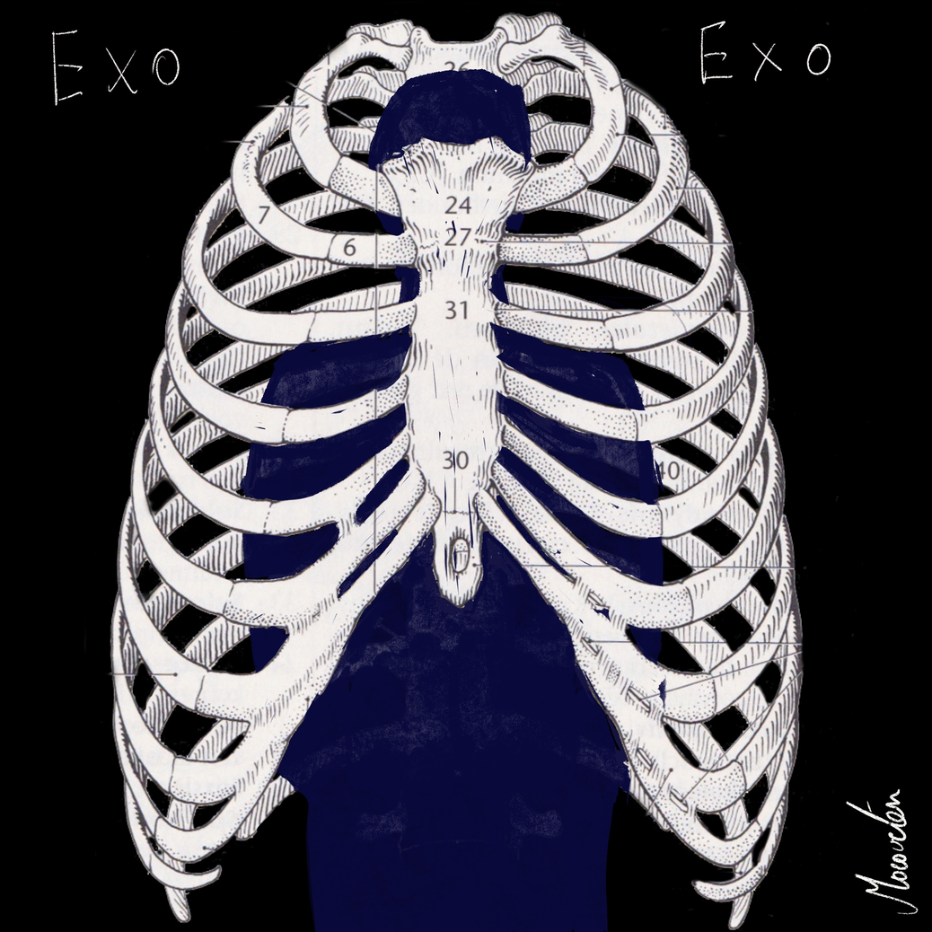 Mijn exoskelet kleeft aan de buitenkant. Mijn persoon wordt daardoor alleen maar zichtbaar. Het wordt tastbaar maar niet persé herkenbaar. Mijn exoskelet en mijn contour zijn de enige dingen die zichtbaar zijn van buiten af. Ik vind dit fascinerend. Ik vind het fascinerend om te zoeken naar wat het exoskelet en de contour van de ander is. Niet alleen van personen maar ook de gelaagdheid van mijn omgeving.